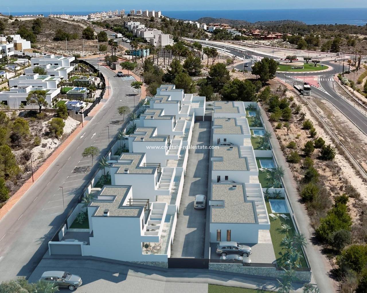 NEU GEBAUTE VILLEN IN FINESTRAT Neubauprojekt von 10 modernen Design-Villen, in einer natürlichen Umgebung mit Blick auf das Meer und die Berge, in der Nähe des Golfplatzes Puig Campana und in kurzer Entfernung zu den Städten Finestrat und Benidorm. Das Projekt wird in zwei Bauphasen unterteilt, die wiederum zwei Arten von Häusern umfassen, mit 1 oder 2 Etagen, 3 Doppelschlafzimmern, 2 oder 3 kompletten Badezimmern, Wohn-Esszimmer mit integrierter Küche, Waschküche, großer Terrasse und Garten, privatem Pool, Außenparkplatz, 1 oder 2 Mehrzweckkellern und in einigen Modellen geschlossener Tiefgarage. Eine Option für ein Solarium gegen Aufpreis. Villen, die mit den besten Qualitäten und den neuesten Fortschritten in der Konstruktion gebaut werden, unter anderem: - Glasgeländer, die die Kontinuität des Ausblicks nicht unterbrechen. - Bodenbeläge aus Feinsteinzeug erster Qualität. - Gepanzerte Eingangstür. - Aluminium-Außentischlerei mit Wärmebrückenunterbrechung und doppeltem Isolierglas mit niedrigem Emissionsgrad mit Luftkammer und Sicherheit in bruchgefährdeten Bereichen. - Glatte Innenschreinerarbeiten aus weiß lackiertem Holz mit Griffen und Beschlägen aus Edelstahl. - Vollständig ausgestattete Schiebeschränke und Ankleideräume. - Erzeugung von Warmwasser durch ein Wärmepumpensystem mit einem 100-Liter-Speichertank, mit Unterstützung von Sonnenkollektoren auf dem Dach. - Hochwertige Elektroinstallation 9,2kw. - Installation von Klimaanlagen durch Kanäle mit Maschinen enthalten. - Minimalistische Design-Küchen, voll ausgestattet mit Insel, Möbel und Geräte enthalten. - Privater Pool mit Beleuchtung und Strandbereich mit Pflaster oder Kunstrasen. - Vollständig anpassbarer Mehrzweckkeller, je nach Modell mit einem Garagenplatz für ein Fahrzeug und Vorinstallation für ein Elektrofahrzeug. Die Villen befinden sich in einer privilegierten Umgebung an der Costa Blanca, in einer erhöhten Lage am Fuße der Berge, umgeben von Natur und anderen ähnlichen Urbanisationen, mit ausgezeichnetem Blick auf das Meer und die Umgebung. Sehr gute Verkehrsanbindung mit der nahe gelegenen Stadt Finestrat, 10 Autominuten von den Einkaufszentren, der Autobahn A7, den Stränden und den nahe gelegenen Städten Benidorm und Villajoyosa und 30 Minuten von der Stadt Alicante und ihrem internationalen Flughafen entfernt.