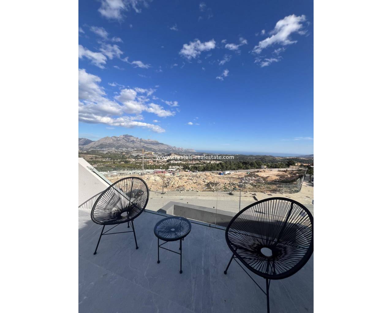 NEU GEBAUTE DOPPELHAUSHÄLFTEN IN POLOP Neubau von modernen Doppelhaushälften mit mehreren Terrassen und Solarium, komplett eingezäunt, mit Parkplatz für Fahrzeuge und privatem Swimmingpool in Polop. Moderne Immobilien mit 3 geräumigen Schlafzimmern mit Einbauschränken (das Hauptschlafzimmer im Erdgeschoss, mit Bad und Ankleidezimmer en suite), 2 geräumigen Badezimmern, großem Wohn-Esszimmer mit offener Küche, großen Terrassen. Die Küche ist mit Unterschränken und Silestone-Arbeitsplatten ausgestattet, mit Cerankochfeld, Backofen, Dunstabzugshaube, Kühlschrank, Waschmaschine, Geschirrspüler und aerothermischer Heizung. Erste Qualitäten: Innenschreinerarbeiten in Holz und weiß lackierten Laminaten, Außenschreinerarbeiten in anthrazitgrauem PVC mit Doppelverglasung und Wärmebrückenunterbrechung und automatischen Jalousien mit Aluminiumlamellen, rutschfeste Keramikböden erster Qualität, glatte Wände, Sicherheitstür mit 5 Ankerpunkten, große Einbauschränke. Die Stadt Polop bietet eine Vielzahl von Möglichkeiten für Liebhaber der Natur und der unvergleichlichen Ruhe. Die Gemeinde genießt ein mediterranes Klima mit kühleren Temperaturen und sauberer Luft und liegt weniger als 10 Kilometer von Benidorm, Altea und deren Stränden entfernt. Sie erstreckt sich von den Flüssen Guadalest und Algar bis zur Stadt Villajoyosa, einschließlich der Strände von Albir und Benidorm; im Landesinneren grenzt sie an Callosa und Guadalest.