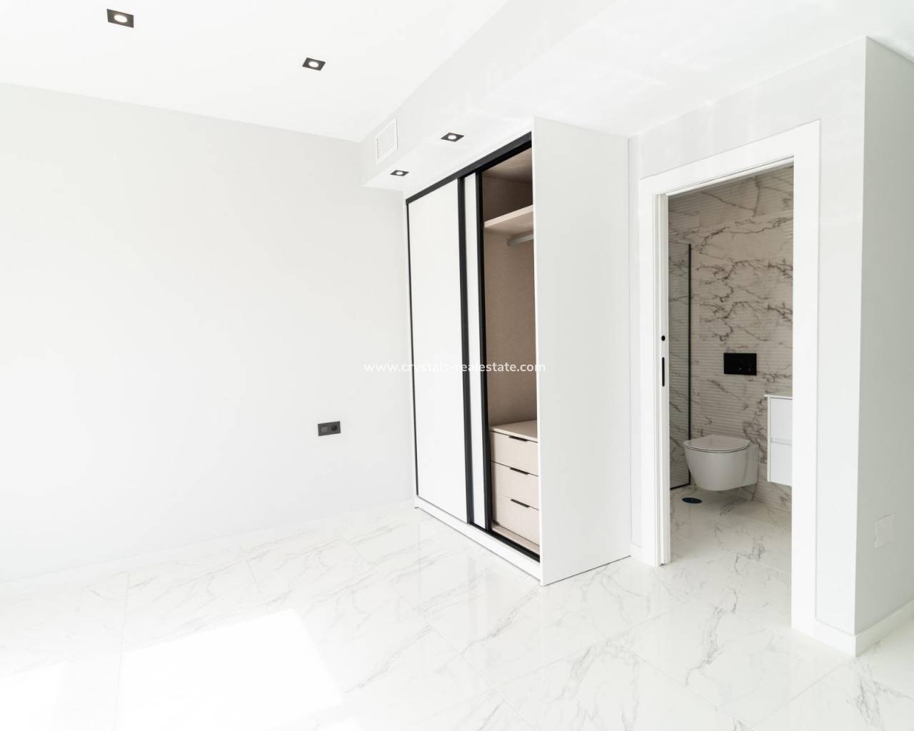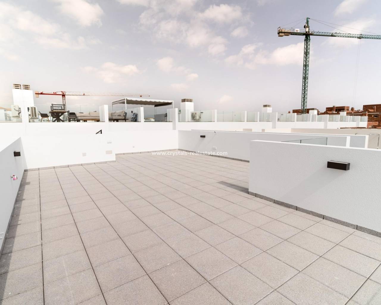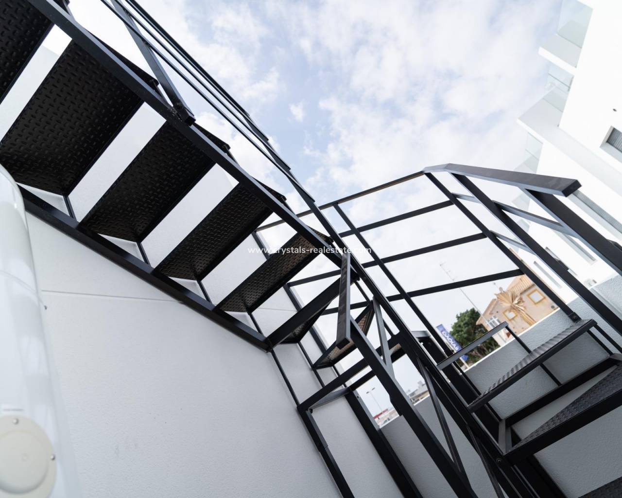 NEU GEBAUTE WOHNANLAGE IN PUNTA PRIMA Neubau-Wohnanlage mit Bungalow-Apartments und 7 freistehenden Villen in Punta Prima. Die Neubauvillen verteilen sich auf zwei Etagen, plus der sonnigen Dachterrasse. Im Erdgeschoss befindet sich ein helles und geräumiges Wohnzimmer mit offener Küche, 1 Schlafzimmer mit Einbauschrank und 1 Badezimmer. Im ersten Stock befinden sich 3 weitere Schlafzimmer mit Einbauschränken und 2 Bäder, davon eines en-suite mit dem Hauptschlafzimmer. Vom Hauptschlafzimmer aus hat man Zugang zu einer Terrasse. Eine Treppe hinauf erreichen Sie eine private Sonnenterrasse. Die Urbanisation wird schöne Grünflächen mit einem Spielplatz für Kinder, ein Fitnessstudio und zwei Gemeinschaftspools bieten. Der Komplex liegt nur wenige Meter vom Zentrum von Punta Prima entfernt, wo Sie alle Annehmlichkeiten finden, die Sie benötigen. In der Umgebung finden Sie eine breite Palette von netten Restaurants, Cafés, Supermärkte, Apotheken und alle Annehmlichkeiten, die Sie benötigen. Punta Prima, nur 5 km von Torrevieja entfernt, zeichnet sich durch eine gute Kommunikations- und Gesundheitsinfrastruktur, die Nähe zum Flughafen Alicante und die vielen ganzjährig geöffneten Dienstleistungsbetriebe aus. Nur 10 km entfernt befinden sich die Golfplätze von Villamartín, Campoamor, Las Ramblas, Las Colinas und Lo Romero sowie die Einkaufszentren von La Zenia und Habaneras.