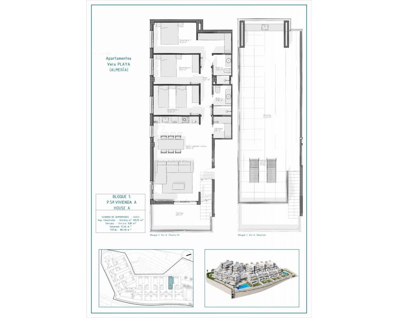 Neubauwohnungen in Vera Playa, Almería – Moderne Häuser in Meeresnähe Zeitgemäßes Wohnen in Pueblo Salinas, nur 2 km vom Strand entfernt Wir präsentieren Ihnen eine atemberaubende neue Wohnanlage in der begehrten Gegend von Vera Playa, innerhalb der exklusiven Urbanisation Pueblo Salinas. Dieser moderne Komplex bietet einen privilegierten Lebensstil nur 2 km von den Stränden von Vera (Almería) entfernt und besticht durch einen spektakulären Meerblick und eine ruhige mediterrane Umgebung, ideal für das ganze Jahr oder für einen Urlaubsgenuss. Elegante Wohnungen mit modernem Komfort und Stil Diese neue Wohnanlage besteht aus 60 hochwertigen Apartments, die sich auf 5 niedrige Gebäude mit nur zwei Wohnungen pro Etage verteilen. Wählen Sie zwischen 2 oder 3 Schlafzimmern, die mit Blick auf Funktionalität, Komfort und Stil entworfen wurden. Zu den Optionen gehören: Erdgeschosswohnungen mit privaten Gärten Wohnungen in mittleren Etagen mit großzügigen Terrassen Penthäuser in der obersten Etage mit großen Sonnenterrassen, Sommerküche und Pergola mit Sonnenkollektoren. Alle Wohnungen verfügen über: Offene, voll ausgestattete Küchen mit integriertem Kühlschrank, Geschirrspüler, Induktionskochfeld, Backofen, Mikrowelle und Dunstabzugshaube Helle Wohnräume und LED-Beleuchtung im gesamten Wohnbereich (außer in den Schlafzimmern) Motorisierte Aluminiumrollläden in den Schlafzimmern Badezimmer mit moderner Ausstattung, einschließlich Handtuchheizern, Duschwannen mit Glasabtrennungen und Einbaumöbeln Vorinstallation für eine Klimaanlage Aerothermisches System für eine effiziente Warmwasserbereitung Sicherheitseingangstür Außergewöhnliche Gemeinschaftsausstattung Die Bewohner genießen Zugang zu einer Vielzahl von Annehmlichkeiten, die für mehr Komfort und Freizeitgestaltung sorgen, darunter: Zwei Außenpools, ideal für die Sommermonate Ein beheizter Innenpool für ganzjährige Nutzung Privater Parkplatz und Abstellraum für jede Immobilie Vorinstallation für das Aufladen von Elektrofahrzeugen auf den Parkplätzen Erstklassige Lage mit hervorragender Anbindung Vera Playa ist ein beliebtes Reiseziel an der Küste, das für seine breiten Sandstrände und seinen entspannten Lebensstil bekannt ist. Die Lage der Anlage bietet einfachen Zugang zu allen wichtigen Dienstleistungen und Sehenswürdigkeiten: Strand: 2 km Desert Springs Golf Resort: 8 km Stadtzentrum von Vera: 5 km Yachthafen und Restaurants von Garrucha: 6 km Parque Comercial Mojácar: 10 km Flughafen Almería: 85 km (1 Stunde mit dem Auto) Machen Sie Vera Playa zu Ihrem neuen Zuhause Ob Sie einen dauerhaften Wohnsitz, einen Rückzugsort für den Urlaub oder eine kluge Investition suchen, diese neu gebauten Apartments bieten Ihnen einen unvergleichlichen Wert in einer der begehrtesten Gegenden der Costa de Almería. Kontaktieren Sie uns noch heute für weitere Informationen und um Ihren Besuch zu vereinbaren.