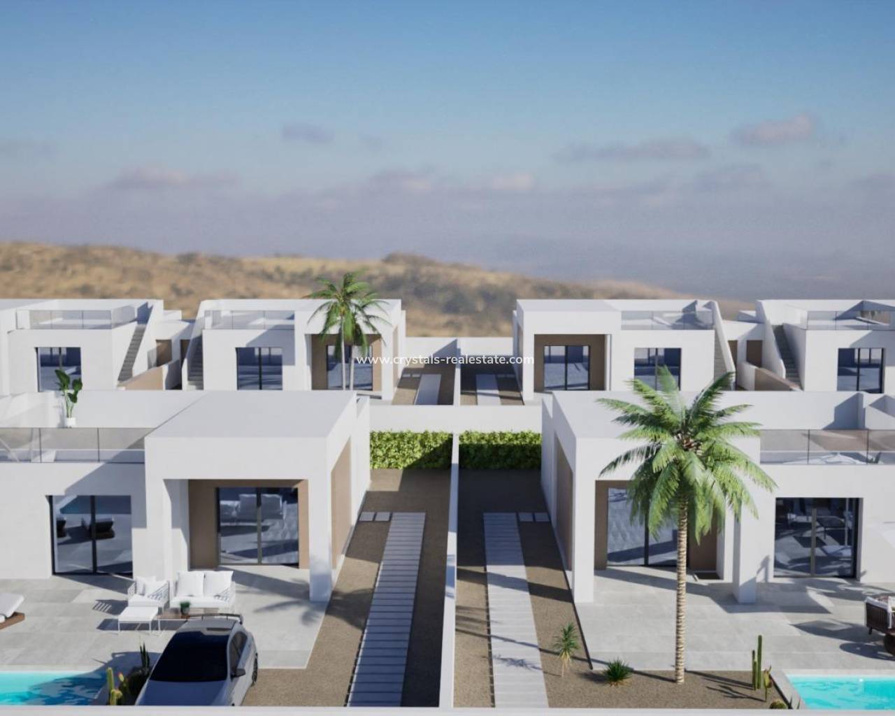 Moderne Villen in La Romana, Alicante Exklusive Neubauwohnungen in einem charmanten spanischen Dorf Diese modernen Neubauvillen in La Romana sind für diejenigen gedacht, die Ruhe, Komfort und den authentischen spanischen Lebensstil suchen. Die Häuser befinden sich auf 370 m² großen Grundstücken in einem Wohngebiet am Rande des Dorfes und sind nur einen kurzen Spaziergang vom Stadtzentrum entfernt, wo Sie traditionelle Restaurants, Geschäfte und alle täglichen Dienstleistungen genießen können. Umgeben von Weinbergen, Mandelbaumhainen und Berglandschaften bietet La Romana eine einzigartige ländliche Umgebung und ist dennoch nur 30 Minuten von der Küste entfernt. Geräumiges Design mit modernem Komfort Jede Villa bietet 127 m² Wohnfläche, verteilt auf 3 Schlafzimmer und 2 Badezimmer, darunter eine Master-Suite mit eigenem Bad. Der offene Wohn- und Essbereich fügt sich nahtlos in die möblierte Küche ein und bietet direkten Zugang zur Terrasse und zum privaten Pool. Zu den weiteren Ausstattungsmerkmalen gehören ein Abstellraum/Waschküche und ein privater Parkplatz auf dem Grundstück. Für diejenigen, die zusätzlichen Platz im Freien wünschen, besteht die Möglichkeit, gegen Aufpreis ein Dachsolarium hinzuzufügen. Premium-Ausstattung inklusive Diese Villen sind mit hochwertigen Oberflächen ausgestattet und verfügen über folgende Ausstattung: Privater Pool von 6 x 3,5 m Klimaanlage mit Wärmepumpe (Installation und Gerät inklusive) Moderne Küche mit weißen Schränken und Granitarbeitsplatten LED-Beleuchtung im gesamten Haus und auf der Veranda Doppelverglasung, weiße Innentüren und Einbauschränke Die Fertigstellung ist 14 Monate nach der Reservierung geplant, sodass Sie ein brandneues, individuell gestaltetes Zuhause erhalten. Ideale Lage in der Landschaft von Alicante La Romana ist ein traditionelles spanisches Dorf im Landesinneren von Alicante, das für seine gastfreundliche Gemeinde und seine natürliche Umgebung bekannt ist. Seine Lage bietet die perfekte Balance zwischen Ruhe und Erreichbarkeit: Aspe – 8 km Elche – 18 km Flughafen Alicante – 35 km Strände der Costa Blanca – 30 km Golfplätze (Font del Llop & Alenda) – 20 km Alicante Stadt – 32 km Ihr mediterraner Lebensstil erwartet Sie Wenn Sie auf der Suche nach einer ruhigen Umgebung sind, umgeben von Bergen, Weinbergen und charmanten spanischen Städten, aber dennoch in der Nähe der Mittelmeerküste, sind diese Villen in La Romana die perfekte Wahl. Kontaktieren Sie uns noch heute für weitere Informationen und sichern Sie sich Ihr neues Zuhause in Alicante.
