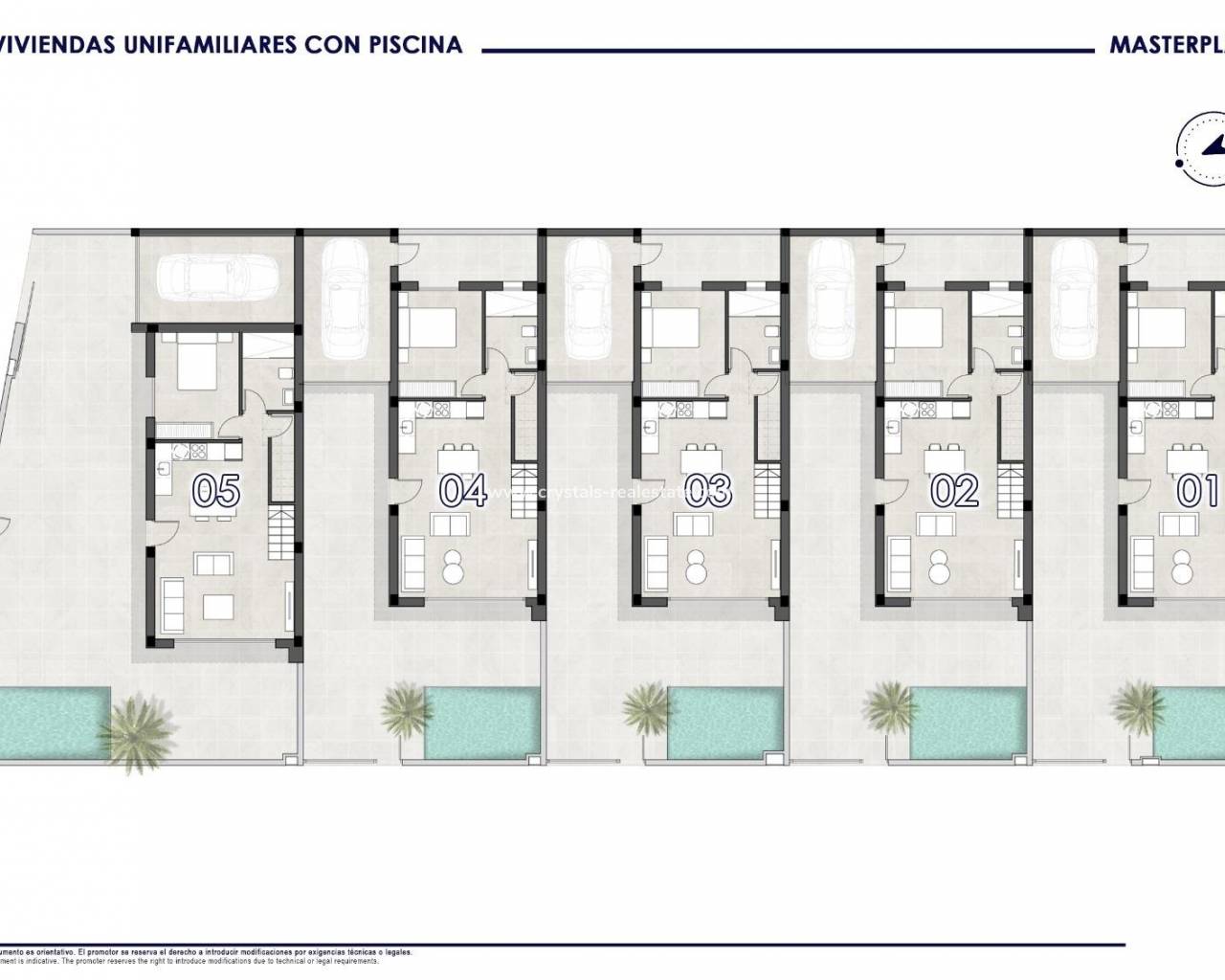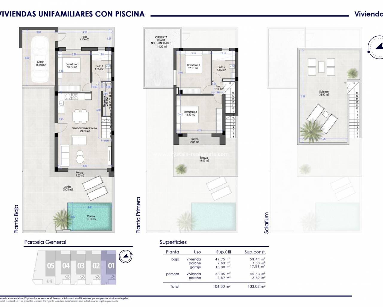 Neubau-Doppelhaushälften mit privatem Pool in San Pedro del Pinatar Moderne Häuser in erstklassiger Lage Diese exklusive Wohnanlage mit 5 Doppelhaushälften befindet sich in San Pedro del Pinatar, einer lebhaften Küstenstadt an der Costa Cálida. In der Nähe des städtischen Sportzentrums, nur wenige Gehminuten vom Stadtzentrum und nur 3,5 km von den Stränden des Mar Menor und des Mittelmeers entfernt, bieten diese Häuser die perfekte Mischung aus Komfort, Bequemlichkeit und mediterranem Lebensstil. Zeitgemäßes Design und funktionale Raumaufteilung Jede Villa erstreckt sich über zwei Etagen und ist in moderner Architektur gestaltet, wodurch Raum und Tageslicht optimal genutzt werden. Mit 3 Schlafzimmern und 2 Bädern sind diese Immobilien ideal für Familien, als Ferienhäuser oder als Kapitalanlage. Erdgeschoss: Offene Küche, die mit dem hellen Wohn- und Essbereich verbunden ist, ein Schlafzimmer, ein Badezimmer, eine hintere Terrasse und direkter Zugang zum privaten Garten mit Pool. Erster Stock: Zwei weitere Schlafzimmer, ein Badezimmer und eine geräumige Terrasse mit Zugang zum privaten Dachsolarium, ideal zum Sonnenbaden oder zur Unterhaltung. Hochwertige Ausstattung und Komfort Die Villen werden mit hochwertigen Ausstattungsmerkmalen und durchdachten Details geliefert, um ein modernes Wohnen zu gewährleisten: Vollständig möblierte und ausgestattete Küche mit Geräten Privater Swimmingpool und Garten Dachsolarium für ganzjähriges Wohnen im Freien Sommerküche inklusive Innen- und Außenbeleuchtungspaket Geschlossene private Garage San Pedro del Pinatar – Lebensstil und Umgebung San Pedro del Pinatar ist bekannt für seinen ganzjährigen Sonnenschein, seine Sandstrände und seine Naturlandschaften wie den berühmten Naturpark Salinas y Arenales. Die Stadt bietet alle wichtigen Dienstleistungen, darunter Geschäfte, Supermärkte, Restaurants, Gesundheitszentren und Sportanlagen, was sie zu einem ausgezeichneten Ort sowohl für das permanente Wohnen als auch für den Urlaub macht. Entfernungen zu wichtigen Sehenswürdigkeiten: Strände des Mar Menor – 3,5 km Einkaufszentrum Dos Mares – 5 km Yachthafen Lo Pagán – 4 km Roda Golf – 8 km Flughafen Murcia (Corvera) – 35 km Flughafen Alicante – 75 km Sichern Sie sich Ihr neues Zuhause am Meer Diese neu gebauten Doppelhaushälften in San Pedro del Pinatar verbinden modernes Design, hochwertige Ausstattung und eine privilegierte Lage in der Nähe des Meeres und aller Annehmlichkeiten. Kontaktieren Sie uns noch heute für weitere Informationen oder um einen Besichtigungstermin zu vereinbaren und den ersten Schritt zu Ihrem Traumhaus am Mittelmeer zu machen.