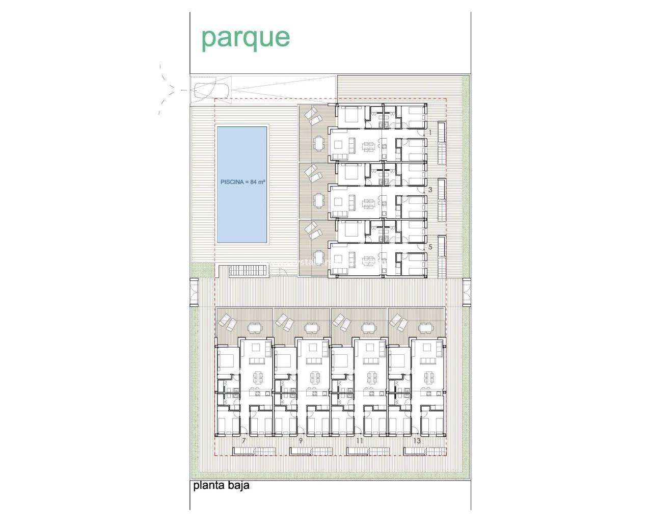 Neubau-Bungalows zum Verkauf in Bigastro Modernes Wohnen an der Costa Blanca Süd Exklusive Wohnanlage mit 14 modernen Häusern Entdecken Sie dieses neue Wohnprojekt mit 14 modernen Bungalows in Bigastro, Alicante. In einem expandierenden Stadtteil gelegen und nur wenige Gehminuten vom Zentrum entfernt, bietet diese Wohnanlage Komfort, Stil und ein hervorragendes Preis-Leistungs-Verhältnis in einer ruhigen mediterranen Umgebung. Jedes Haus ist mit hochwertigen Oberflächen und funktionalen Grundrissen ausgestattet, die sich sowohl für das dauerhafte Wohnen als auch für Urlaubsaufenthalte eignen. Moderne Häuser mit Wahl zwischen Grund- oder Obergeschossgrundrissen Das Projekt bietet geräumige Immobilien mit 3 Schlafzimmern und 2 Badezimmern, darunter ein eigenes Bad im Hauptschlafzimmer. Käufer können zwischen Bungalows im Erdgeschoss mit großen privaten Terrassen oder Einheiten im Obergeschoss mit Terrasse und privatem Dachsolarium mit freiem Blick wählen. Alle Häuser verfügen über einen Tiefgaragenstellplatz und einen Abstellraum, was für maximalen Komfort sorgt. Komfort, Design und Energieeffizienz Jeder Bungalow verfügt über eine offene Küche, die in das Wohnzimmer integriert ist, Einbauschränke, eine private Terrasse und eine Vorinstallation für eine Klimaanlage. Die Warmwasserversorgung erfolgt über ein effizientes aerothermisches System, das einen geringeren Energieverbrauch gewährleistet. Die Anlage umfasst auch einen großzügigen Gemeinschaftspool, der von wunderschön angelegten Gärten umgeben ist und sich perfekt zum Entspannen und Genießen des sonnigen Klimas der Costa Blanca eignet. Erstklassige Lage mit hervorragender Anbindung Bigastro ist eine charmante Stadt in der Region Vega Baja, die für ihre ruhige Atmosphäre, ihre lokalen Annehmlichkeiten und ihre hervorragende Verkehrsanbindung bekannt ist. Von diesem Wohngebiet aus erreichen die Bewohner bequem das Stadtzentrum von Bigastro 0,5 km Orihuela 5 km Playas de Guardamar del Segura 15 km Centro Comercial Zenia Boulevard 20 km Aeropuerto Internacional de Alicante 48 km Krankenhaus Vega Baja 10 km Die Autobahn AP 7 bietet eine schnelle Anbindung an Alicante, Murcia und die umliegenden Küstenstädte, was Bigastro zu einem idealen Standort sowohl zum Wohnen als auch zum Pendeln macht. Eine wachsende Region mit allen wichtigen Dienstleistungen Bigastro bietet Supermärkte, Schulen, Sportanlagen, Parks und eine Vielzahl von lokalen Geschäften und Restaurants. Die Kombination aus Komfort, ruhiger Umgebung und guter Anbindung hat es zu einem immer beliebteren Wohnort sowohl für Einheimische als auch für internationale Käufer gemacht. Sichern Sie sich noch heute Ihr neues Zuhause in Bigastro Ob Sie nun auf der Suche nach einem modernen Urlaubsdomizil oder einer komfortablen ganzjährigen Residenz sind, dieses Neubauprojekt in Bigastro ist eine Gelegenheit, die Sie sich nicht entgehen lassen sollten. Kontaktieren Sie uns jetzt für weitere Informationen oder um einen Besichtigungstermin zu vereinbaren.