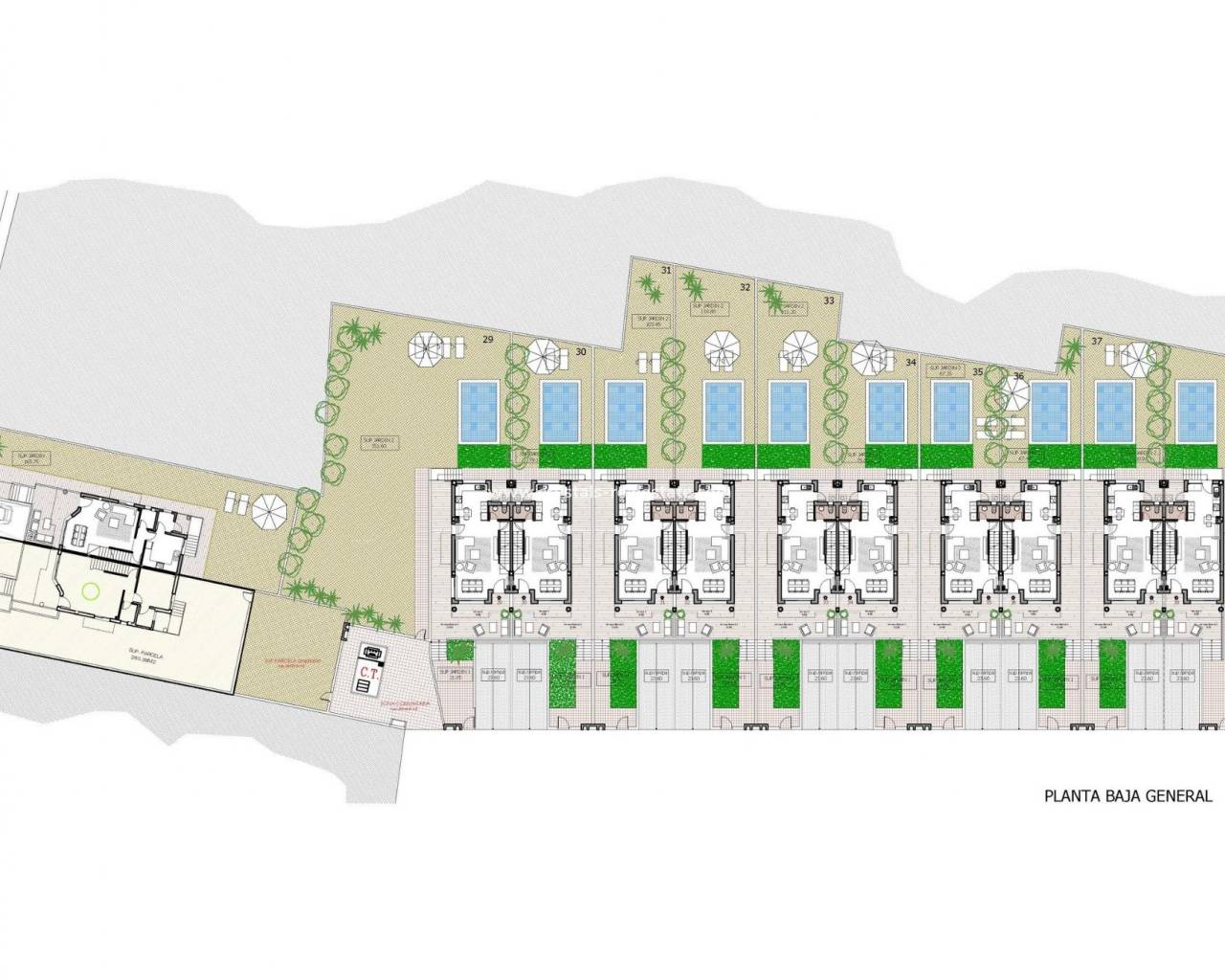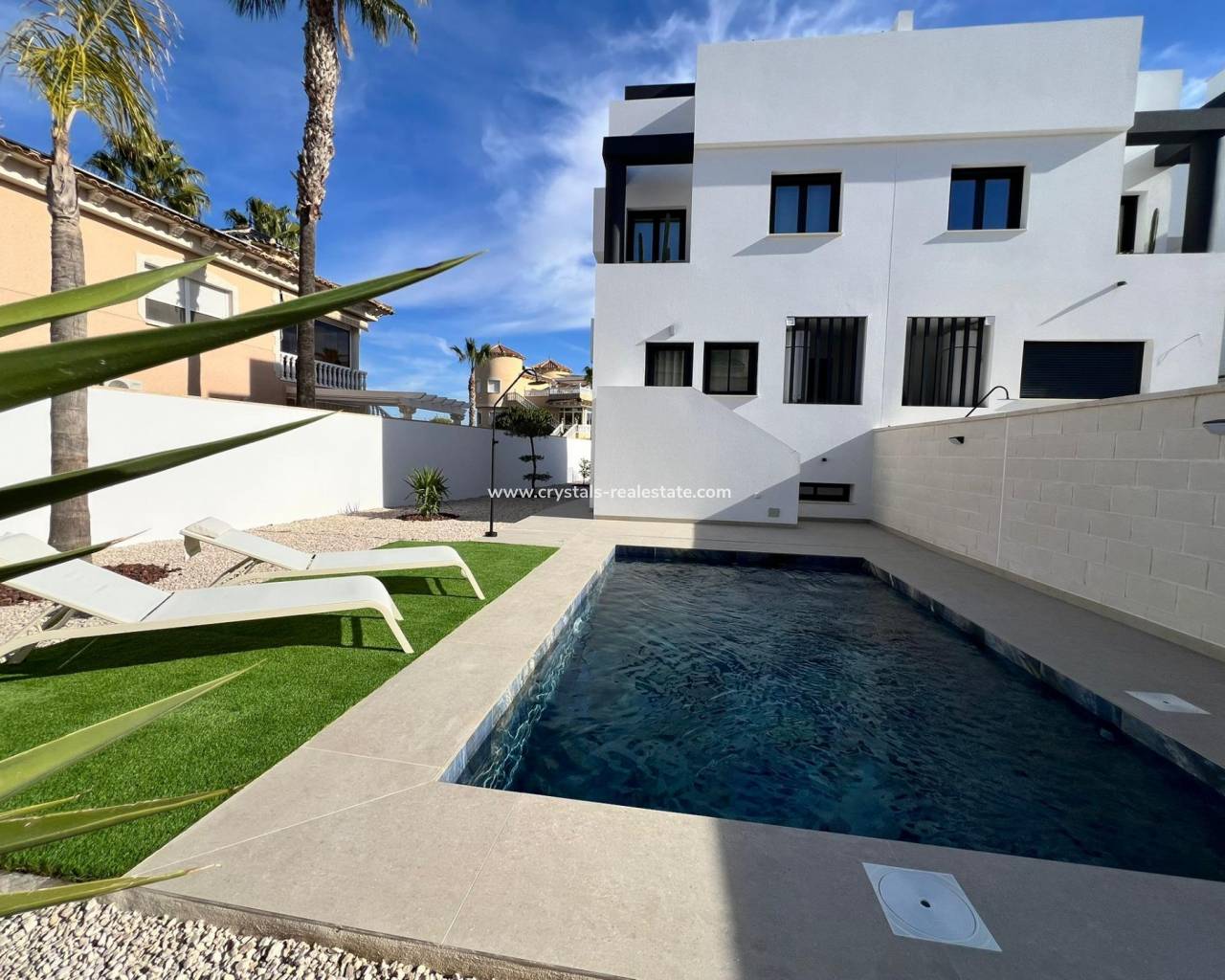 Moderne, neu gebaute Doppelhaushälften in Benferri, Alicante Exklusive Neubauwohnanlage im Benfis Park Entdecken Sie dieses neue Bauprojekt mit 10 modernen Doppelhaushälften im Benfis Park in Benferri, im Herzen der Region Vega Baja in Alicante. Diese charmante Stadt bietet eine ruhige Wohnatmosphäre mit gepflegten Straßen und einer einladenden Gemeinschaft, ideal für Familien, Rentner oder alle, die einen entspannten Lebensstil unter der mediterranen Sonne suchen. Benferri verbindet ländlichen Charme mit einer hervorragenden Anbindung an nahegelegene Städte, Strände und wichtige Verkehrsverbindungen. Geräumige Villen mit privatem Solarium Jede Villa hat eine Gesamtfläche von 222 m² und erstreckt sich über drei Etagen sowie ein privates Solarium. Im Untergeschoss befinden sich eine Garage mit Platz für zwei Autos und ein Abstellraum. Das Erdgeschoss verfügt über einen hellen, offenen Wohn- und Essbereich mit einer modernen Küche, einer Waschküche und einer Gästetoilette mit direktem Zugang zu einer Terrasse, die das Haus umgibt. Im ersten Stock befinden sich drei Schlafzimmer und zwei Badezimmer, eines davon en suite, sowie zwei Terrassen, die zwei der Schlafzimmer bedienen. Die oberste Etage bietet ein privates Solarium von ca. 39 m², das sich perfekt zum Sonnenbaden, Essen im Freien oder Entspannen mit freiem Blick eignet. Moderne Ausstattung und optionaler Pool Die Villen verfügen über eine voll ausgestattete Küche mit Elektrogeräten und eine Vorinstallation für eine Klimaanlage. Ein privater Swimmingpool ist als optionale Zusatzausstattung erhältlich, sodass Käufer ihr Haus weiter personalisieren können. Das Design konzentriert sich auf Komfort, Funktionalität und natürliches Licht und schafft so ein modernes Wohnumfeld, das sich ideal für das ganze Jahr oder für den Urlaub eignet. Leben in Benferri Vega Baja Benferri liegt nur wenige Minuten von Orihuela entfernt und profitiert von einer schnellen Anbindung an die Autobahn AP 7, sodass die Strände der Costa Blanca, der Flughafen Alicante Elche und die wichtigsten Einkaufs- und Freizeitmöglichkeiten schnell und bequem zu erreichen sind. Die umliegende Landschaft ist geprägt von fruchtbarem Ackerland, sanften Hügeln und mediterraner Landschaft, die ein Gefühl des Wohlbefindens und der Verbundenheit mit der Natur vermitteln. Die Stadt bietet alle wichtigen Dienstleistungen wie Supermärkte, Schulen, Sportanlagen und eine lebendige lokale Atmosphäre das ganze Jahr über. Entfernungen zu Sehenswürdigkeiten Orihuela 8 km Strand von Guardamar del Segura 25 km La Finca Golf Resort 18 km Vistabella Golf 14 km Flughafen Alicante Elche 45 km Hafen von Torrevieja 32 km Einkaufszentrum Zenia Boulevard 30 km Ihr neues Zuhause an der Costa Blanca Diese neu gebauten Doppelhaushälften in Benferri bieten großzügigen Platz, modernes Design und eine strategisch günstige Lage in der Nähe von Stränden, Golfplätzen und wichtigen Dienstleistungen. Kontaktieren Sie uns noch heute, um weitere Informationen zu erhalten oder einen privaten Besichtigungstermin zu vereinbaren.