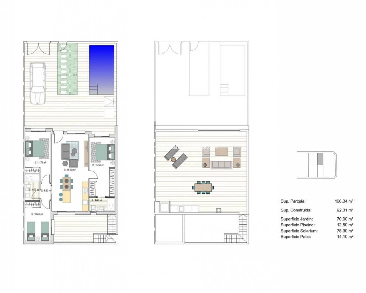NEU GEBAUTE STADTHÄUSER IN SAN JAVIER Neubau-Luxuskomplex mit 24 einstöckigen oder zweistöckigen Villen mit privatem Pool, Terrassenbereich und Solarium mit Sommerküche, die es Ihnen ermöglicht, alle Sonnenstunden zu genießen, jeden Tag des Jahres. Jede Villa hat 2 oder 3 Schlafzimmer und 2 ausgestattete Badezimmer auf einer Ebene oder 3 Schlafzimmer und 3 ausgestattete Badezimmer auf zwei Ebenen. Die Villen sind in einem zeitgenössischen Stil und mit einem offenen Konzept entworfen, das eine voll ausgestattete Küche und ein Wohn- und Esszimmer umfasst. Die Anlage befindet sich in San Javier (Murcia), in der Nähe des Strandes, umgeben von Dienstleistungen, Parks, Sportanlagen und mehreren Golfplätzen. Die Immobilie wird den höchsten Standards entsprechen und ist ausgestattet mit: Privates Schwimmbad mit Dusche. Küche komplett möbliert und ausgestattet mit Backofen, Mikrowelle, Kühlschrank, integriertem Geschirrspüler, Herd und Dunstabzugshaube. Beleuchtung: sowohl im Inneren des Hauses (Esszimmer, Küche, Flure und Bäder) als auch im Außenbereich. Gefütterte Kleiderschränke mit Schubladen. Voll ausgestattete Bäder mit Toilette, Waschtisch, Spiegel und Dusche mit Abtrennung. Vorinstallation für eine Kanal-Klimaanlage. Solarium mit Sommerküche. Parkplatz auf dem Grundstück. San Javier liegt in der Nähe aller Annehmlichkeiten mit einfachem Zugang zum Strand, Wassersport, Geschäften und dem Verkehrsnetz. Hier können Sie alle Einrichtungen genießen, die San Javier zu bieten hat, wie z.B. die örtlichen Geschäfte, Bars und Restaurants, sowie die Nähe zu Einkaufszentren, dem Flughafen von Murcia und all den schönen Orten, die man am Mar Menor finden kann. Der Flughafen Corvera/Murcia ist 30 Minuten und der Flughafen Alicante 45 Minuten entfernt.