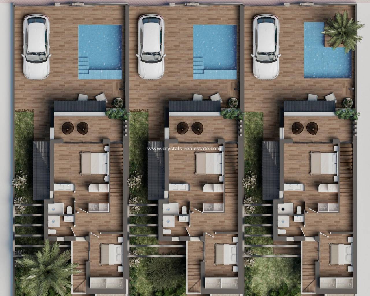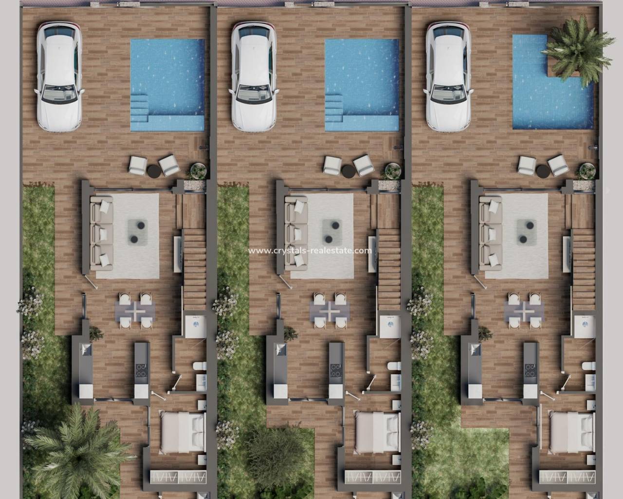 Villas de lujo en San Pedro del Pinatar - Vida moderna en una ubicación privilegiada Vista general de las impresionantes villas de nueva construcción Descubra el epítome de la vida de lujo en San Pedro del Pinatar con estas excepcionales villas de nueva construcción. Cada villa ha sido cuidadosamente diseñada con una meticulosa atención al detalle, ofreciendo interiores espaciosos e iluminados por el sol que combinan estilo y confort. Estas villas cuentan con una sala de estar de planta abierta, comedor y cocina, creando un flujo continuo en todo el espacio de vida principal. Con 3 dormitorios, incluyendo una suite principal con vestidor y baño privado, estas casas son perfectas para aquellos que buscan elegancia y funcionalidad. Espacios exteriores privados y servicios de alta gama Cada villa está situada en una parcela privada de aproximadamente 200 metros cuadrados, lo que proporciona un amplio espacio para la vida al aire libre y la relajación. La propiedad incluye una piscina privada, perfecta para disfrutar de los cálidos días mediterráneos, y una zona de aparcamiento designada. Un amplio solárium privado ofrece un hermoso espacio para tomar el sol, entretenerse o simplemente disfrutar de la tranquilidad del entorno. Estas villas ofrecen un estilo de vida de alta calidad con servicios de primera calidad y comodidades modernas en una de las zonas costeras más deseadas de España. Ubicación privilegiada en San Pedro del Pinatar San Pedro del Pinatar es conocido por sus hermosas playas, su vibrante comunidad y su proximidad a servicios esenciales y actividades de ocio. Situadas a sólo 900 m de la playa y de las instalaciones para deportes acuáticos, estas villas permiten a los residentes disfrutar de toda la belleza natural y las oportunidades recreativas de la costa del Mar Menor. Las villas también están convenientemente cerca de una amplia gama de servicios locales, incluyendo tiendas, restaurantes y bares. Los centros comerciales más grandes están a poca distancia en coche, proporcionando a los residentes un fácil acceso a una variedad de opciones de venta al por menor. Proximidad a puntos de interés clave Aeropuerto de Murcia-Corvera: Aproximadamente a 30 km de distancia, ofreciendo cómodas opciones de viajes internacionales y nacionales. Aeropuerto de Alicante: A sólo una hora en coche (unos 85 km), proporcionando acceso a numerosos destinos globales. Varios campos de golf como Lo Romero, Roda Golf o La Serena a poca distancia en coche, perfectos para los entusiastas del golf. Centros comerciales: A 10 minutos en coche del Centro Comercial Dos Mares, que ofrece varias tiendas minoristas, restaurantes y opciones de entretenimiento. Playas del Mar Menor: A sólo 900 m de las villas, estas costas de arena son ideales para relajarse, nadar y realizar actividades acuáticas. Experimente el encanto de San Pedro del Pinatar San Pedro del Pinatar ofrece el encanto de una ciudad costera tradicional española a la vez que todas las comodidades modernas. Su estratégica ubicación cerca del Mar Menor y de la Costa Cálida garantiza un fácil acceso a hermosas playas, servicios de alta calidad y una vibrante cultura local, lo que la convierte en el lugar ideal al que llamar hogar.