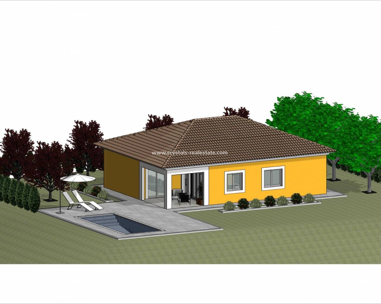 Villas de obra nueva situadas en La Romana. Villas de obra nueva con varios modelos a elegir entre 2 o 3 dormitorios, de una o 2 plantas y construidas con losa o con estructura: dependiendo del modelo y la parcela elegida, se calculará el precio exacto. Todas las villas se construyen en parcelas rústicas de más de 10.000 m2 de los cuales se vallarán 2.500 m2. Las villas disponen de cocina americana con el salón, armarios empotrados, piscina privada, porche y plaza de parking exterior. Hay varias parcelas a elegir, para el cálculo del precio se ha considerado una parcela con un precio de 62.000 eur (si se elige otra parcela, se pagará o abonará la diferencia según el precio de la misma). Realizada en régimen de auto promoción, entrega en unos 12 meses desde la concesión de la licencia. Si busca un entorno tranquilo, cerca de pueblos típicos españoles alejados de la masificación turística, rodeado de montañas, con una amplísima parcela y a unos 30 minutos del mar, esta es su casa. La Romana es un típico pueblo español con todos los servicios para el día a día, rodeado de montañas y con varios parajes naturales en las cercanías donde se pueden hacer rutas de senderismo o mountain bike. Situado a 30 minutos del aeropuerto de Alicante.
