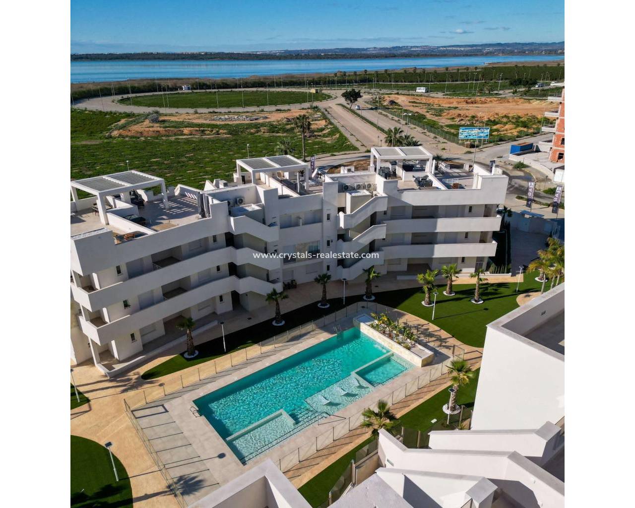 NOUVELLE CONSTRUCTION RÉSIDENTIELLE À EL RASO, GUARDAMAR DEL SEGURA Complexe résidentiel privé d'appartements de nouvelle construction à El Raso, Guardamar del Segura. Complexe composé de 135 logements de 2 ou 3 chambres dans des blocs de 3 ou 5 étages plus solarium, conçu de manière minimaliste et avec des normes de qualité élevées, son architecture moderne s'harmonise avec nos grands espaces ouverts, la nature et les piscines, offrant une atmosphère unique et paisible. De beaux complexes résidentiels, dont un espace GYM-Spa vitré avec vue sur les espaces verts, les piscines et depuis sa terrasse surplombant la lagune salée de La Mata, un court de paddle tennis, etc. Pack mobilier inclus dans le prix. Place de parking incluse dans le prix. Le développement est situé sur une parcelle unique et non répétable, en bordure du paysage naturel de la lagune salée, profiter de sa biodiversité et de l'environnement unique, à El Raso de Guardamar del Segura, avec toutes sortes de services et de commodités et à proximité des meilleures plages de la Méditerranée. En même temps, grâce à la proximité de la plage d'El Moncayo, vous pourrez faire une promenade en vélo et profiter du meilleur climat de la Costa Blanca. De plus, grâce aux cinq niveaux de certains des blocs qui composent la résidence, tous orientés vers le sud, nous incluons dans nos penthouses de luxe, une cuisine entièrement équipée sur le solarium, une douche extérieure (eau chaude/froide), et un espace jacuzzi, pour compléter l'expérience unique de vivre face à un environnement naturel unique et inégalable. El Raso est une partie de Guardamar del Segura. Guardamar del Segura est une ville située sur la Costa Blanca Sud. Avec ses 11 kilomètres de plage naturelle et sa grande forêt de pins. Guardamar del Segura a un grand port avec des activités tout au long de l'année, il a un grand centre sportif avec paddle tennis, tennis, football et une grande piscine chauffée qui fonctionne toute l'année. Il dispose également d'une bibliothèque où le wifi et les ordinateurs sont gratuits. Guardamar del Segura est à seulement 20 km de l'aéroport Alicante - Elche (El Altet), où il y a de nombreux vols chaque jour avec des connexions vers les principales villes européennes, en raison de la demande de touristes sur la Costa Blanca.