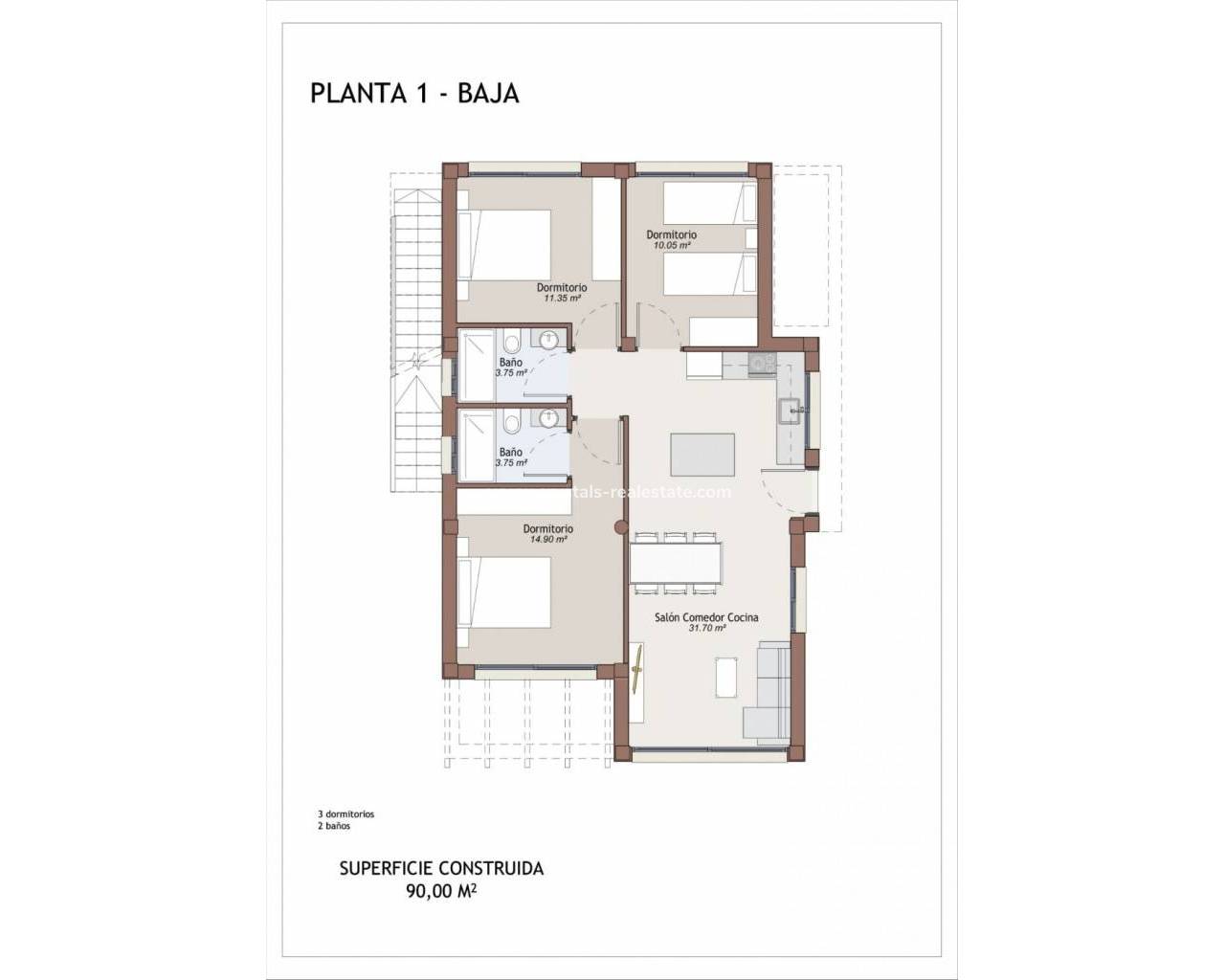VILLAS DE NOUVELLE CONSTRUCTION À VERA, ALMERIA Nouvelle construction résidentielle de belles villas situées sur la côte d'. Almeria, Vera. Nouvelle construction résidentielle de villas indépendantes à choisir entre deux modèles : double hauteur, avec trois chambres et trois salles de bains et trois chambres avec deux salles de bains, tous sur un étage. Toutes deux avec piscine de 6x3 mètres et sur un terrain de 230 mètres environ. En option, toutes les villas peuvent disposer d'un espace sous-bâti, moyennant un coût supplémentaire. Villas situées à seulement 200 mètres de la plage de Vera. Vera est l'un des meilleurs endroits naturistes d'Europe, reconnu pour la qualité et la pureté de ses eaux. Elle offre six kilomètres de plages (Las Marinas-Bolaga, Puerto Rey, El Playazo, Quitapellejos). Vera est limitrophe des célèbres destinations touristiques telles que Mojacar et les grottes d'Almanzora. Complexe résidentiel situé à environ 1,5 heure de route de l'aéroport de Murcia - Corvera et à environ 2 heures de l'aéroport d'Alicante.