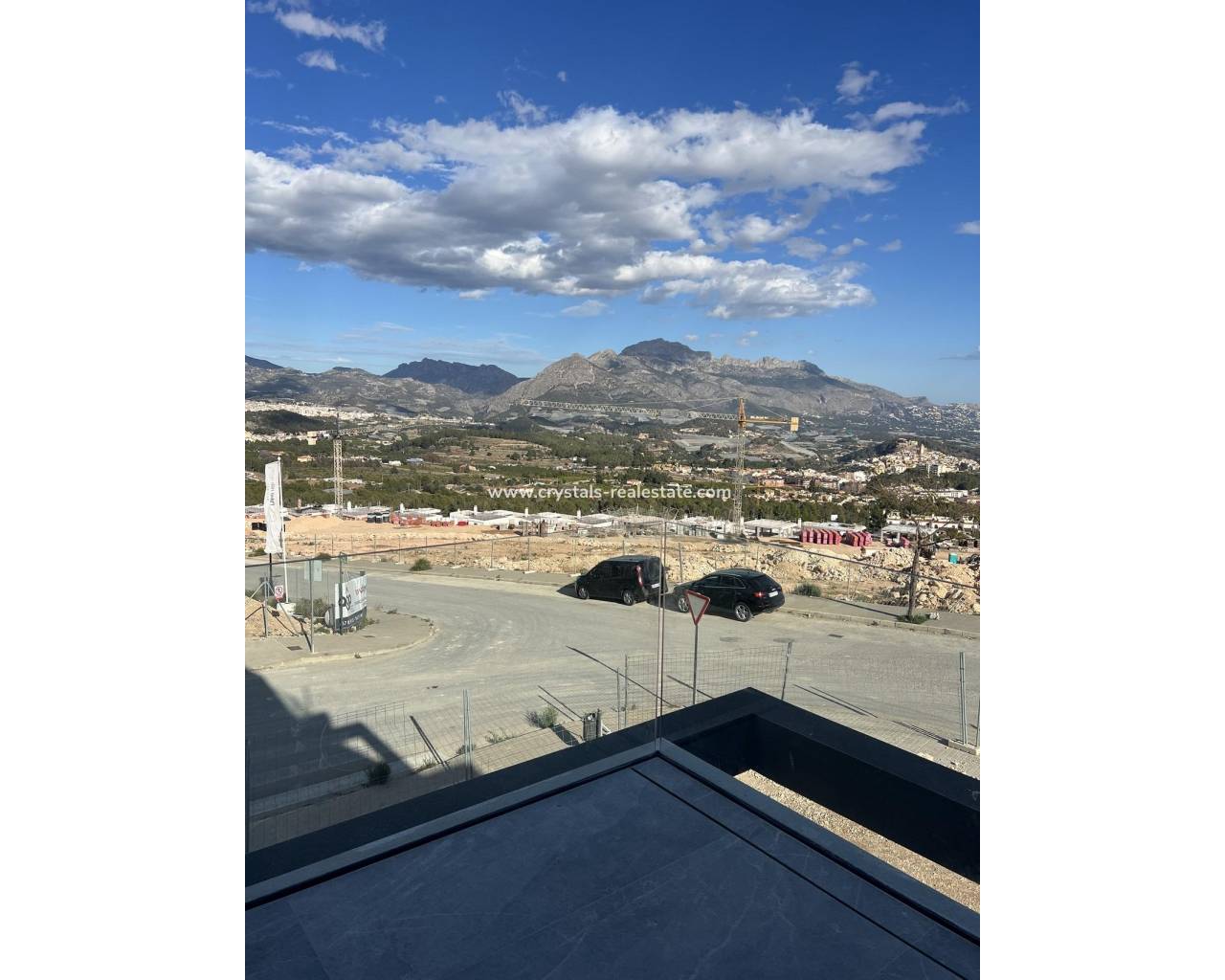 VILLAS JUMELÉES NEUVES À POLOP Nouvelle construction de maisons de ville modernes et de villas jumelées avec plusieurs terrasses et solarium, entièrement clôturées, avec parking pour véhicules et piscine privée à Polop. Propriétés modernes avec 3 chambres spacieuses avec armoires encastrées (la principale au rez-de-chaussée, avec salle de bains et dressing en suite), 2 salles de bains spacieuses, grand salon-salle à manger avec cuisine ouverte, terrasses spacieuses, grand demi sous-sol avec fenêtres. Cuisine équipée d'éléments bas et de plans de travail en pierre, avec plaque vitrocéramique, four, hotte aspirante, réfrigérateur, lave-linge, lave-vaisselle et chauffage aérothermique. Premières qualités : menuiserie intérieure en bois et stratifiés laqués blancs, menuiserie extérieure en pvc gris anthracite avec double vitrage et rupture de pont thermique, et stores automatiques à lamelles aluminium, sols céramiques de 1ère qualité antidérapants, murs lisses, porte blindée avec 5 points d'ancrage, grandes armoires encastrées. La ville de Polop offre une gamme étonnante d'options pour les amateurs de grands espaces entourés de nature et d'une paix inégalée. La municipalité jouit d'un climat méditerranéen avec des températures plus fraîches et un air plus pur. Elle est située à moins de 10 kilomètres de Benidorm, d'Altea et de leurs plages. Elle s'étend des rivières Guadalest et Algar jusqu'à la ville de Villajoyosa, en passant par les plages d'Albir et de Benidorm ; à l'intérieur des terres, elle est bordée par Callosa et Guadalest.
