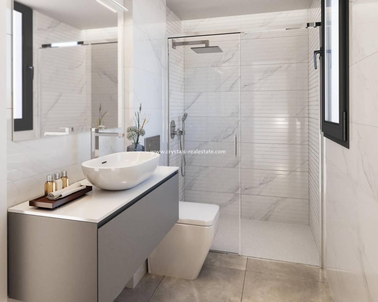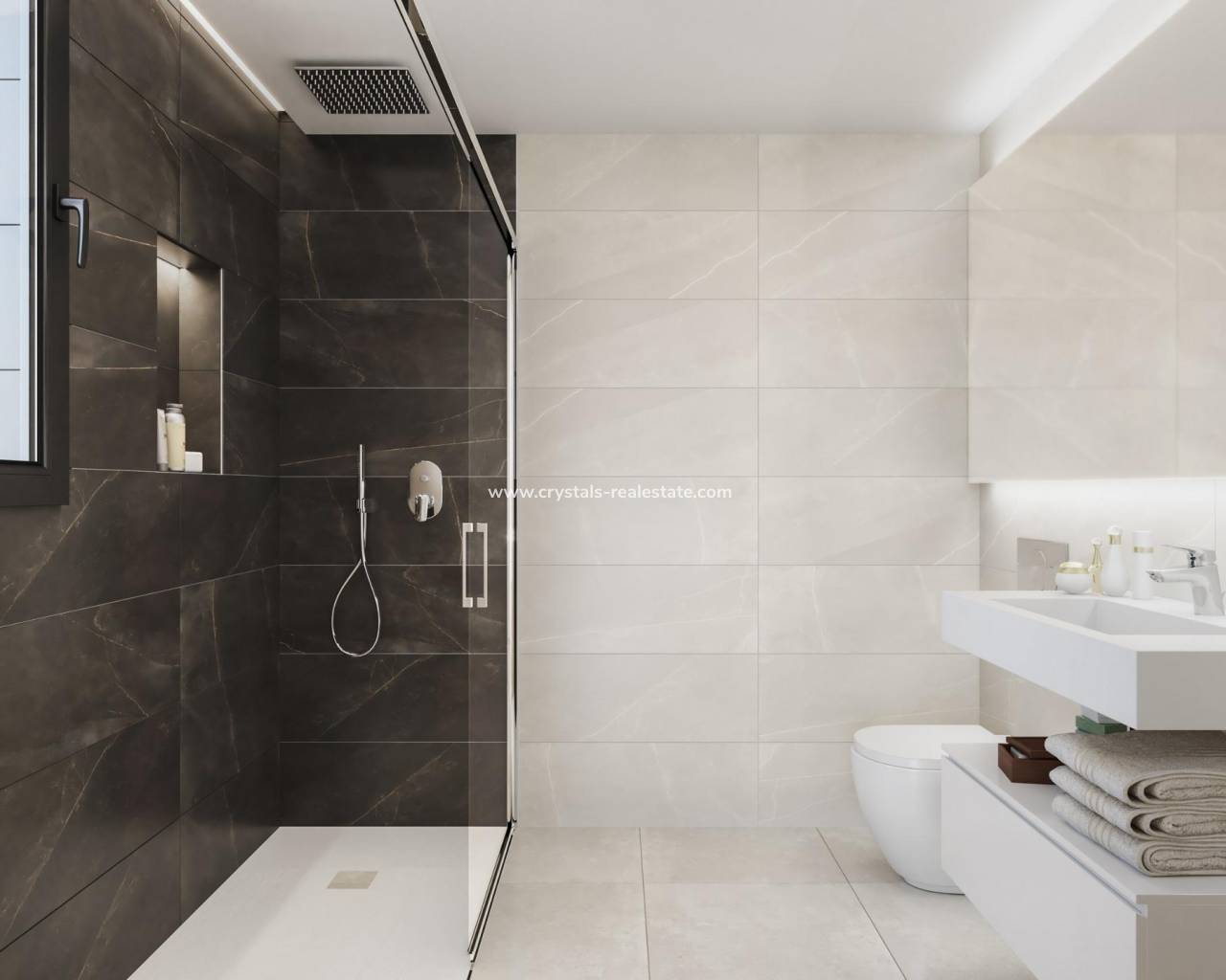NOUVELLE CONSTRUCTION RÉSIDENTIELLE À GUARDAMAR DEL SEGURA Résidence de style moderne composée d'appartements et de penthouses avec 3 chambres, 2 salles de bains, cuisine ouverte sur le salon, armoires encastrées, terrasses spacieuses, parking souterrain. Cuisine entièrement meublée avec placards muraux et au sol. Plan de travail 'Silestone' ou similaire avec évier intégré. Chauffage au sol dans les salles de bains. Le bâtiment comprendra 9 étages, dont les plus élevés seront des penthouses avec terrasse et solarium privé. Place de parking en sous-sol, selon le modèle. Guardamar del Segura est entouré de divers écosystèmes qui donnent lieu à un paysage unique, où la magie et la beauté de la Méditerranée se rejoignent dans cette ville, qui est délimitée par un parc de front de mer avec plus de 11 km de dunes naturelles couvertes de pins qui bordent les plages de sable fin et doré, formant une forêt unique dans la Méditerranée, un parc naturel de haute protection. Les eaux propres, les rendent idéales pour la pratique des sports nautiques. Guardamar représente la cuisine méditerranéenne et valencienne. Le fleuve Segura, son verger traditionnel et son climat nous offrent des plats variés, des légumes, des fruits et des agrumes, le tout dans un cadre magnifique. La flotte de pêche de Guardamar propose les exquis poissons blancs de la baie et les crevettes royales de Guardamar même. Guardamar del Segura est situé près de l'embouchure du fleuve Segura, dans un endroit appelé "La Gola del Segura", où se trouve le port de pêche sportive Marina de Las Dunas, dans le sud de la Costa Blanca, à 30 km de l'aéroport international d'Alicante.