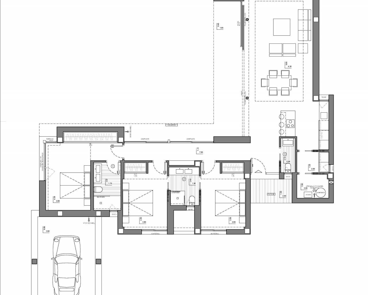 VILLA NEUVE AVEC VUE SUR LA MER A CUMBRE DEL SOL Une maison avec un concept clair, pour créer une fusion entre l'intérieur et l'extérieur, en obtenant des séjours ouverts, des pièces lumineuses et fonctionnelles. Le salon envahit la terrasse et vous invite à profiter du merveilleux climat méditerranéen, qui nous offre près de 300 jours de soleil par an. Conçue en modules ouverts en forme de L, la villa embrasse le jardin principal, où une impressionnante piscine à débordement se confond avec la mer. Un espace ouvert sur l'extérieur, qui invite à profiter du soleil et du climat méditerranéen, mais orienté de manière à obtenir un maximum d'intimité. La villa est divisée en deux niveaux. À l'étage se trouve le coin nuit, où deux chambres partagent une salle de bains commune, tandis que la suite parentale devient un sanctuaire privé avec sa propre salle de bains et son dressing. Depuis les chambres, vous pouvez profiter d'une vue imprenable sur la mer et les montagnes, créant un sentiment de sérénité et de tranquillité qui vous invite à vous détendre. Au rez-de-chaussée se trouve le module de jour, qui s'ouvre sur l'extérieur, créant ainsi un sentiment de continuité et de connexion avec l'environnement. Le module de jour se compose d'un hall d'entrée, d'une toilette pour les invités et d'un tandem formé par un grand salon-salle à manger et une cuisine parfaitement intégrée. Les deux modules convergent vers l'espace extérieur avec la terrasse et la piscine comme point de connexion. Le style contemporain de la villa New Build se mêle à la tradition méditerranéenne, créant un espace harmonieux et équilibré qui invite à la relaxation et à la jouissance des sens. Le jardin principal, avec sa végétation méditerranéenne et ses plantes aromatiques, vous relie à la nature. Il s'agit d'une villa unique et spéciale, conçue pour profiter pleinement de la vie et créer des souvenirs inoubliables dans un environnement de rêve. Une villa qui vous invite à rêver d'une vie pleine de luxe, de confort et de beauté, dans un espace où l'architecture et la nature se fondent en une symphonie parfaite.