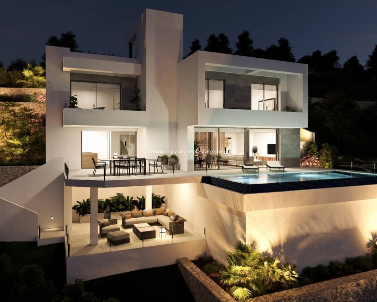VILLA DE LUXE NOUVELLEMENT CONSTRUITE À CUMBRE DEL SOL Villa de nouvelle construction située sur un terrain situé dans une zone exclusive de la station résidentielle Cumbre del Sol, sur un terrain surélevé qui permet à la propriété de profiter d'une vue à la fois sur la mer et l'intérieur de la Costa Blanca Nord. La villa de luxe avec jardin et piscine privée est distribuée sur trois étages, l'accès situé au dernier étage, où nous avons le parking et l'ascenseur qui relie toute la maison. A l'étage intermédiaire se trouvent les chambres, un total de 3 chambres toutes avec accès à la terrasse, un luxe de se réveiller en sortant sur la terrasse pour respirer l'air frais et commencer la journée en regardant la Méditerranée. Au rez-de-chaussée, un grand espace de vie plein de lumière, relié à la cuisine et à l'extérieur, ce qui fait de cette pièce le cœur de la maison. Les espaces extérieurs de cette villa de luxe ont été soignés dans les moindres détails, un jardin adapté à la parcelle, avec des murs en terrasse qui génèrent différents espaces et niveaux, et une grande terrasse avec une piscine à débordement qui se confond avec la mer, sont ses éléments les plus caractéristiques. Villa située dans l'une des zones les plus exclusives de la station résidentielle Cumbre del Sol, un paradis face à la Méditerranée. Avec un emplacement enviable, à côté de criques et de plages spectaculaires, entouré par la nature, avec une offre gastronomique et de loisirs unique, bien relié à deux aéroports internationaux à moins de 100 km, et stratégiquement situé entre Alicante et la ville de Valence, un paradis sur la Côte Blanche Nord. La résidence fait partie de l'urbanisation Cumbre del Sol, les logements qui s'y trouvent bénéficient donc de tous les services qu'offre une urbanisation consolidée comme Cumbre del Sol, qui dispose d'une zone commerciale avec un supermarché, un coiffeur, une pharmacie, des bars et des restaurants, l'école internationale Lady Elizabeth et une offre sportive variée avec des courts de tennis et de paddle, des sentiers de randonnée, un centre équestre, sans oublier la plage de Moraig avec ses bars de plage et les criques de Llebeig et Los Tiestos, des criques d'une grande beauté et d'un grand charme. Et toute l'offre de restauration et de loisirs de Benitachell et des communes de Xàbia (à seulement 7 km) et Teulada-Moraira (à seulement 4 km), toutes des communes touristiques au prestige international reconnu, et à équidistance des villes d'Alicante et de Valence.
