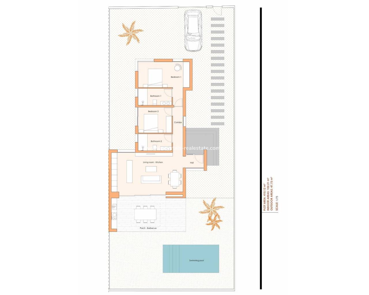 VILLAS NEUVES À ALTAONA GOLF RESORT, MURCIA Nouvelle construction d'un développement extraordinaire de villas nichées dans le magnifique Altaona Resort à Murcie. Cette enclave exclusive offre un cadre idéal pour faire l'expérience de la fusion parfaite entre la vie de luxe et le style de vie méditerranéen tranquille. Le paysage pénètre dans la maison par les grandes fenêtres. Le jardin acquiert une grande présence et fait partie de l'essence même de la villa. À l'intérieur, elles sont spacieuses et lumineuses, conçues pour laisser la lumière méditerranéenne inonder les pièces. Les villas nouvellement construites sont dotées d'une cuisine ouverte, de 2 chambres, de 2 salles de bains, d'une terrasse, d'un jardin privé avec piscine et d'une place de parking. Caractéristiques : - Les propriétés ont un certificat énergétique de niveau A. - Installation de climatisation avec pompe à chaleur. Dans toute la maison à l'exception des salles de bains. - Chauffage électrique par le sol dans le salon et les salles de bains avec thermostat individuel par zone. - Système de renouvellement d'air dans la cuisine, les salles de bains, la buanderie et les toilettes des invités. - Cuisine Comprend une hotte aspirante et une plaque de cuisson électrique à induction avec 3 points de cuisson. - Éclairage LED dans le salon, le couloir et à l'extérieur. Le reste des pièces est préparé pour que le futur propriétaire puisse installer son propre éclairage. - Prises USB dans toutes les chambres. - Interphone électronique pour l'accès de l'extérieur au chemin intérieur. Sonnette à l'entrée de la propriété. - Système domotique avec deux interrupteurs intelligents. - Jardin paysager privé avec système d'irrigation goutte à goutte et la piscine. - Clôture extérieure de l'urbanisation. - Portails d'accès à l'urbanisation pour les véhicules : Portail coulissant en métal avec système d'ouverture à distance. Résidentiel situé à Altaona Golf à seulement 15 minutes en voiture du centre de la capitale Murcie et 20 minutes des plages, vous pouvez profiter de la tranquillité et de la sécurité offerte par le terrain de golf qui a 18 trous et le confort de vivre à proximité de tous les services. L'aéroport de Murcie Corvera est à seulement 15 minutes en voiture.