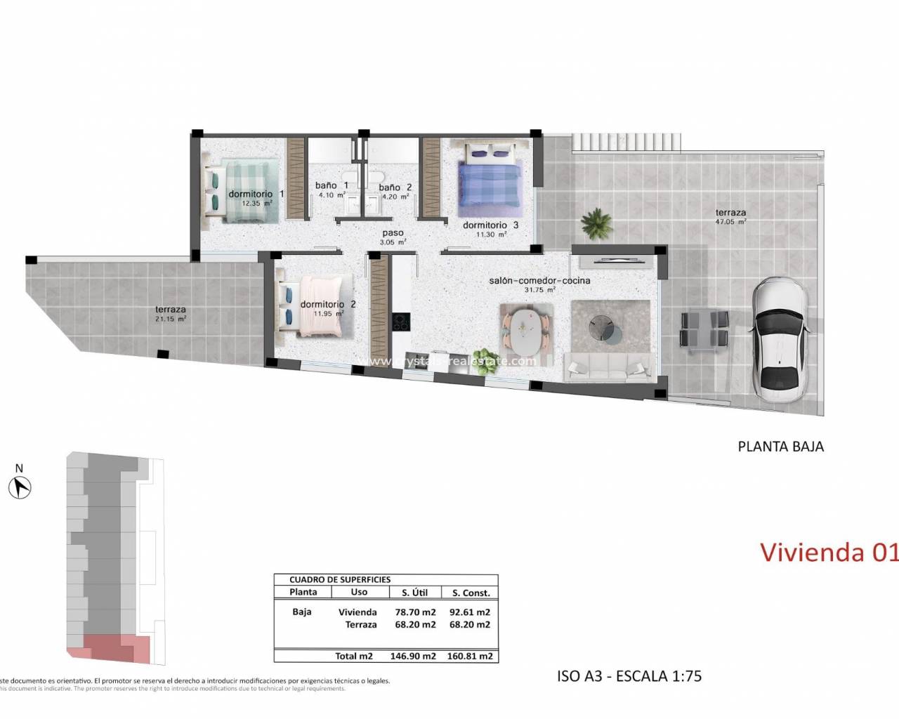 Complexe résidentiel de bungalows nouvellement construits à Pilar de la Horadada Bungalows modernes exclusifs à Pilar de la Horadada Ce nouveau projet propose 16 bungalows élégants dans la ville de Pilar de la Horadada, située dans la partie la plus méridionale de la Costa Blanca. Vous avez le choix entre des bungalows de 2 ou 3 chambres, chacun doté de 2 salles de bains. Les unités du rez-de-chaussée sont dotées de spacieuses terrasses à l'avant et à l'arrière, offrant un accès direct à la piscine et au jardin communs, tandis que les unités du dernier étage bénéficient d'un grand solarium privé sur le toit. Des espaces de vie spacieux et des équipements modernes Chaque bungalow comprend un salon/salle à manger lumineux et ouvert et une cuisine entièrement équipée avec de grandes portes coulissantes qui relient les espaces intérieurs et extérieurs de manière transparente. Les chambres sont équipées d'armoires encastrées. La climatisation est installée et le complexe comprend un ascenseur pour faciliter l'accès aux étages supérieurs. Des places de parking privées sont également incluses pour toutes les unités. Situation privilégiée à Pilar de la Horadada Pilar de la Horadada est une ville espagnole traditionnelle avec une rue principale animée proposant des supermarchés, des boutiques, des restaurants et des bars. Les belles plages de Torre de la Horadada et de Mil Palmeras sont à seulement 5 minutes. Le développement est idéalement situé à 40 km de l'aéroport de Corvera (Murcie) et à 55 km de l'aéroport d'Alicante, ce qui en fait un endroit idéal pour une vie permanente ou des vacances.