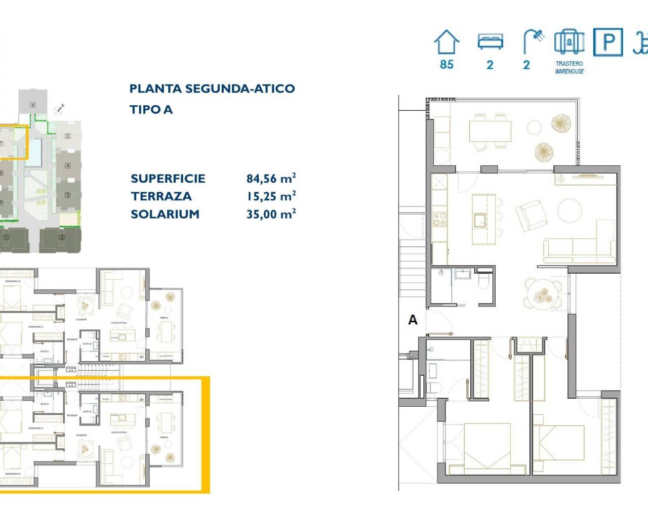 NOUVELLE CONSTRUCTION RÉSIDENTIELLE À SAN PEDRO DEL PINATAR Nouveau complexe résidentiel d'appartements et de penthouses modernes à San Pedro Del Pinatar. Appartements et penthouses avec 2 et 3 chambres à coucher, 2 salles de bains, avec cuisine ouverte avec coin salon, grandes terrasses, armoires encastrées, salles de bains entièrement équipées, terrasses. Les appartements du rez-de-chaussée ont un jardin privé et les penthouses du dernier étage ont un solarium privé. Chaque propriété dispose d'un parking souterrain avec des salles de stockage. Aménagement paysager et jardinage dans les parties communes avec une sélection minutieuse des espèces appropriées à la région. Installation complète de la piscine avec finition en gresite, avec éclairage intégré, système d'épuration et équipement dans une cabine encastrée dans le sol. La situation privilégiée de San Pedro del Pinatar sur la Mar Menor et le littoral méditerranéen attire les amateurs de voile et de sports nautiques, avec des ports de plaisance et des clubs de voile, tandis que les plages et les bains de boue naturels attirent ceux qui recherchent le soleil, la mer et le sable en toute sécurité. San Pedro del Pinatar dispose d'une communauté bien établie et offre une excellente gamme d'activités, notamment une piscine couverte et des installations sportives, ainsi qu'un programme d'activités sociales tout au long de l'année grâce à un climat hivernal agréable. Les bienfaits des bains de boue, typiques de la région, ou les eaux calmes de la Mar Menor, ont favorisé la croissance de Lo Pagán, qui dispose actuellement de toutes sortes de commodités. De plus, il bénéficie d'un excellent emplacement, à seulement 5 minutes du centre commercial Dos Mares. L'aéroport de Murcia/Corvera se trouve à 30 minutes et celui d'Alicante à une heure de route.