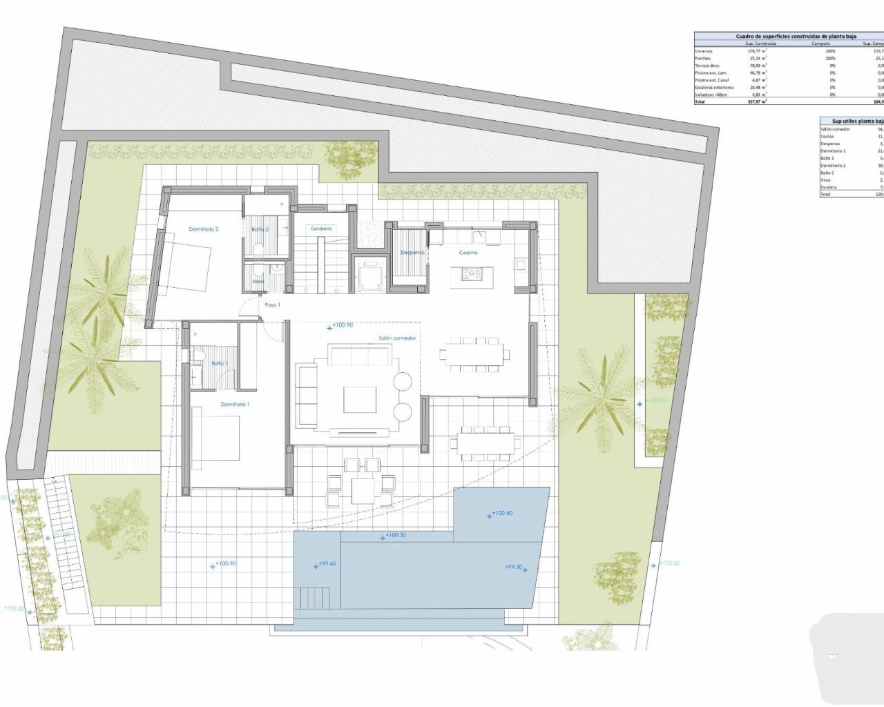 Luxueuse villa avec vue sur la mer à Calpe - Élégance moderne et vue imprenable Situation privilégiée à Calpe, Alicante - Quartier calme et bien établi Cette luxueuse villa est située à Calpe, Alicante, dans un quartier paisible et bien établi, connu pour son charme et sa proximité avec certaines des meilleures attractions de la région. À seulement 5,4 km du cœur de Calpe, cette villa offre un accès pratique au centre-ville et aux superbes plages de Calpe, aux eaux cristallines et au sable doux. Connue pour la beauté de ses paysages, Calpe est entourée de parcs naturels et de l'emblématique Peñón de Ifach, un point de repère qui ajoute un caractère unique au paysage. Points d'intérêt à proximité : Centre et plages de Calpe : À seulement 5,4 km, permettant un accès facile aux magasins, restaurants et plages de la région. Aéroport d'Alicante : 78 km, ce qui facilite les déplacements internationaux et nationaux. Terrains de golf : Plusieurs terrains de golf renommés se trouvent dans un rayon de 15 km, parfaits pour les amateurs de golf. Centres commerciaux : Le populaire centre commercial La Marina de Benidorm se trouve à environ 25 km et offre une variété de boutiques et de restaurants. Port de Calpe : À environ 6 km, idéal pour les amateurs de yachts et de sports nautiques. Superbe villa avec vue sur la mer et 3 étages de confort moderne Cette villa offre 335 m² d'espace de vie luxueux sur un généreux terrain de 1 042 m², avec des vues spectaculaires sur la mer, le Peñón de Ifach et la ville de Calpe. Avec trois étages bien conçus, reliés par un escalier intérieur et un ascenseur, cette villa offre style et commodité à tous les niveaux. Semi-sous-sol : Parking, buanderie et cave à vin En entrant depuis la rue par des portes automatiques, vous arrivez directement à l'entrée du garage, située au niveau du demi sous-sol. Le spacieux garage de 52 m² peut accueillir plusieurs véhicules et comprend une buanderie dédiée et une cave à vin, ajoutant une touche de luxe et de praticité. Rez-de-chaussée : Espace de vie ouvert et accès à la piscine Au rez-de-chaussée, auquel on accède par l'escalier ou l'ascenseur, on trouve un vaste salon et une salle à manger donnant sur un porche de 25 m² et une impressionnante terrasse de 78 m² au bord de la piscine. La cuisine ouverte, entièrement équipée d'appareils Siemens, s'intègre parfaitement à l'espace de vie. Cet étage comprend également deux chambres avec salle de bains attenante et une salle de repos pour les invités. Étage supérieur : Chambres privées avec de superbes terrasses Le dernier étage comprend deux chambres doubles supplémentaires, chacune avec une salle de bains privative et un accès à des terrasses ouvertes offrant des vues panoramiques. Finitions de haute qualité et équipements modernes Cette villa est dotée d'équipements haut de gamme, notamment la menuiserie Technal avec verre de sécurité, l'éclairage LED, le chauffage par le sol, la climatisation et un système aérothermique pour l'eau chaude et le chauffage. Les autres équipements comprennent des stores électriques, des armoires encastrées, des systèmes d'alarme intérieurs et extérieurs, des caméras de sécurité pré-installées et une piscine à débordement de 10 x 3,3 m avec un espace barbecue. Orientée au sud pour une exposition optimale au soleil, cette villa est économe en énergie avec un classement A. Vivez une vie de luxe et de tranquillité à Calpe