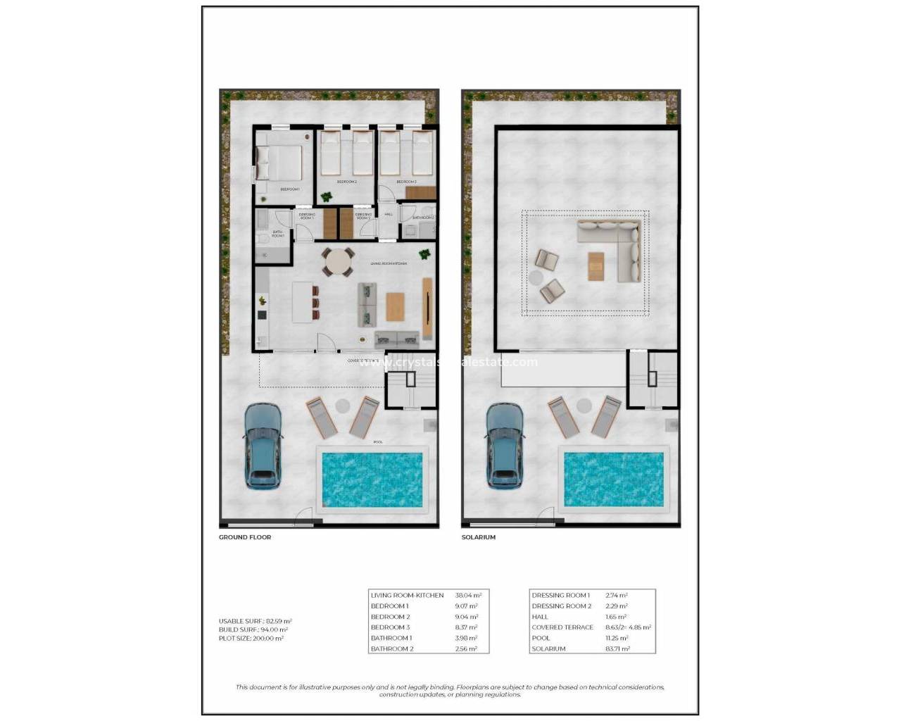 VILLAS NEUVES À FUENTE ALAMO, MURCIA Nouvelle construction résidentielle de villas et de maisons de ville à Fuente Alamo, Murcie. Cet emplacement offre un cadre naturel exceptionnel, loin de l'agitation des grandes villes et de la pression touristique de la côte. En outre, nous nous engageons à travailler dans une perspective de développement durable, en minimisant notre impact sur l'environnement et en maximisant l'intégration avec la communauté locale. Ici, vos rêves d'un mode de vie paisible et durable deviennent réalité. Imaginez que vous vous réveillez chaque matin dans un cadre naturel époustouflant, entouré de paysages sereins et de la beauté unique de la campagne de Murcie. Les projets de construction neuve privilégient l'efficacité énergétique, l'utilisation de matériaux respectueux de l'environnement et l'intégration harmonieuse dans l'environnement rural. De la conception de la propriété à la planification du développement, nous nous efforçons de réduire notre empreinte carbone et de promouvoir des pratiques responsables dans toutes nos activités. Développement donnant la priorité à l'efficacité énergétique et à l'intégration communautaire pour créer des logements de haute qualité en harmonie avec l'environnement naturel. Pré-installation d'un système d'air conditionné canalisé, chaud/froid, installation de machines dans les options. Système d'interphone vidéo. Porte d'accès de sécurité laquée en couleur, avec serrure et accessoires de sécurité anti-vandalisme. Penderies avec coffre, doublées à l'intérieur, laquées en blanc. Les meubles de cuisine ne sont pas inclus (en option) : - Meublée d'éléments hauts et bas. Entièrement équipée. Possibilité de tout type de modification par le client. - Plan de travail en pierre. - Évier en acier inoxydable, avec robinetterie Roca ou similaire. - Plaque vitrocéramique, hotte aspirante et four électrique, en acier inoxydable. Balay ou similaire. Système de panneaux solaires photovoltaïques, avec réservoir d'accumulation. Pré-installation du système de climatisation, chaud/froid, installation des machines en option. Piscine privée en option, avec éclairage nocturne immergé et purification par système de chloration saline. Possibilité d'apporter des modifications à la propriété, sous réserve d'une évaluation préalable approuvée par les deux parties. Fuente Álamo de Murcia est une ville et une municipalité de la région de Murcie, dans le sud de l'Espagne. Elle est située à 22 km au nord-ouest de Carthagène et à 35 km au sud-ouest de Murcie. La ville se trouve dans le bassin de la Mar Menor, entourée des montagnes d'Algarrobo, Los Gómez, Los Victorias et du Carrascoy. L'eau de ces montagnes s'écoule dans la Rambla de Fuente Álamo, puis dans la Mar Menor. Fuente Álamo se trouve à 30 minutes de l'aéroport de Murcie-Corvera.