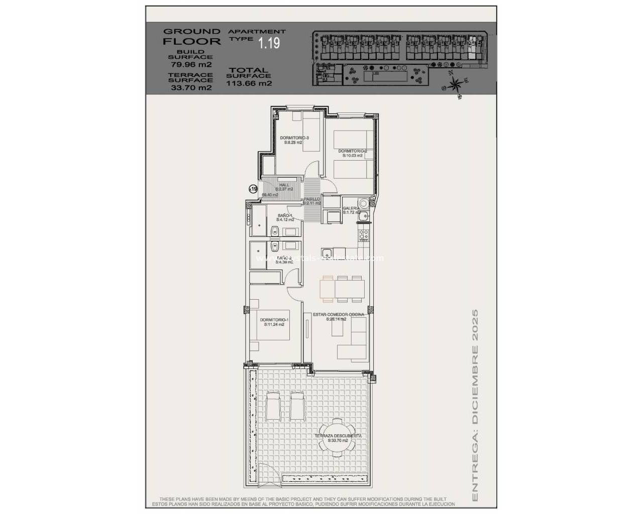 Nouveau développement résidentiel à Torrevieja, à seulement 1 km de la mer Appartements modernes avec 2 et 3 chambres Situé dans le quartier animé d'Altos del Sol à Torrevieja, ce nouveau complexe résidentiel propose une variété d'appartements de 2 et 3 chambres. Les appartements du rez-de-chaussée sont dotés de jardins privés, tandis que ceux du dernier étage disposent de solariums privés pour une détente exclusive en plein air. En outre, le complexe comprend une maison de ville, destinée à ceux qui recherchent plus d'espace et d'intimité. Chaque unité comprend une place de parking souterrain et des salles de stockage sont disponibles en option. Des espaces communs spacieux et des équipements adaptés aux familles Le complexe résidentiel est conçu avec soin et comprend de vastes espaces communs, avec des jardins paysagers qui créent un environnement paisible. Les familles peuvent profiter d'une grande piscine commune avec une zone réservée aux enfants, idéale pour se détendre et se rencontrer sous le chaud soleil méditerranéen. Le projet est situé à environ 1 km de la « Playa de Los Locos », offrant un accès pratique à la plage pour les résidents. Finitions de qualité supérieure et caractéristiques écoénergétiques Ces logements se distinguent par leurs finitions de haute qualité et leur souci du détail. Chaque unité est équipée d'un système de panneaux solaires photovoltaïques de 600 W, ce qui constitue une solution énergétique respectueuse de l'environnement. Parmi les autres caractéristiques de qualité, citons les barbecues intégrés aux solariums, les portes d'entrée blindées, les armoires encastrées avec aménagement intérieur, les meubles de salle de bains avec pare-douche et le chauffage au sol dans les salles de bains, garantissant ainsi confort et style dans tous les recoins. Un emplacement idéal à proximité des services et des attractions Ce lotissement est situé à proximité de tous les services essentiels, ce qui en fait un endroit idéal pour les résidents permanents et les vacanciers. Altos del Sol est connu pour son quartier bien desservi, avec des magasins locaux, des restaurants et des lieux de divertissement accessibles à pied. L'aéroport d'Alicante-Elche se trouve à 45 minutes de route (43 km), tandis que le centre commercial Habaneras est à seulement 3 km, offrant une expérience de shopping complète. Découvrez le style de vie méditerranéen de Torrevieja Torrevieja, située dans le sud d'Alicante, offre la quintessence de l'expérience méditerranéenne. Avec plus de 300 jours de soleil par an et une température moyenne annuelle de 20ºC, les habitants peuvent profiter d'un temps magnifique tout au long de l'année. La ville est réputée pour sa riche gastronomie, avec des ingrédients frais provenant à la fois de la mer et des fermes locales. En outre, Torrevieja possède des plages pittoresques, des promenades, des musées et de nombreuses activités adaptées aux familles avec enfants, ce qui garantit un mode de vie rempli de loisirs et de détente. Venez découvrir Torrevieja Que vous soyez à la recherche d'une communauté balnéaire dynamique ou d'une retraite paisible, ce projet offre une occasion unique de profiter du meilleur du charme côtier de Torrevieja. Découvrez tout ce que cette belle ville a à offrir, de son climat chaud à son riche patrimoine culturel et culinaire.