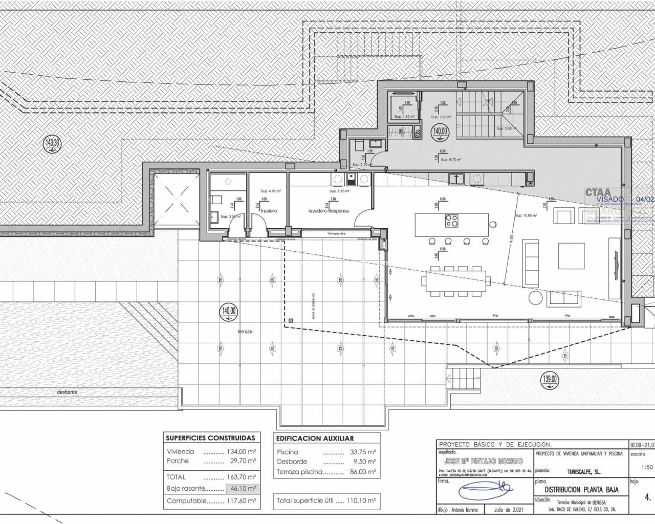 Villa neuve de luxe avec vue panoramique sur la mer à Raco de Galeno, Benissa Costa Emplacement exclusif sur la Costa Blanca Située dans le prestigieux lotissement Raco de Galeno à Benissa Costa, cette villa de luxe offre une combinaison parfaite entre design moderne et charme méditerranéen. La propriété se trouve à seulement 2 km des plages les plus proches et à 5 km de l'autoroute AP-7, offrant un accès rapide à Moraira, Calpe et d'autres destinations renommées de la Costa Blanca. L'aéroport international d'Alicante est à environ 80 km, tandis que des terrains de golf prestigieux tels que le Club de Golf Ifach et Altea Golf sont situés entre 10 et 15 km. Architecture moderne et intérieurs spacieux Conçue pour maximiser la lumière naturelle et les vues spectaculaires sur la mer, la villa présente une architecture contemporaine avec de grandes baies vitrées et une intégration harmonieuse entre l'intérieur et l'extérieur. Répartie sur plusieurs niveaux et reliée par un ascenseur privé, la maison offre quatre chambres spacieuses, chacune avec une salle de bains attenante, ainsi que des toilettes supplémentaires pour les invités. La suite principale bénéficie d'un accès direct à une terrasse privée avec une vue imprenable sur la Méditerranée. Des espaces de vie et de réception exceptionnels Le salon et la salle à manger ouverts sont complétés par une cuisine design entièrement équipée avec des appareils électroménagers haut de gamme, idéale pour la vie quotidienne et pour recevoir. De vastes terrasses entourent la propriété, créant de multiples espaces de détente et de divertissement en plein air. Un style de vie luxueux en plein air Le point fort de cette villa est sa piscine à débordement, offrant une vue panoramique sur le littoral. Une grande terrasse au bord de la piscine est l'endroit idéal pour prendre le soleil, dîner en plein air ou profiter de couchers de soleil inoubliables en famille ou entre amis. Équipements haut de gamme et confort Cette villa neuve est équipée d'une technologie domotique avancée, du chauffage au sol et de la climatisation centralisée, garantissant un confort optimal tout au long de l'année. La propriété dispose également d'un sous-sol offrant un espace supplémentaire pouvant être utilisé à votre guise. Idéale comme résidence principale ou secondaire Avec un permis de construire et une date d'achèvement prévue dans les 18 mois suivant la réservation, cette villa représente une occasion unique d'acquérir un chef-d'œuvre contemporain dans l'un des endroits les plus prisés de la Costa Blanca. Sa proximité avec les plages de sable, les charmantes villes côtières, les marinas, les zones commerciales et les activités de plein air renforce son attrait tant comme résidence principale que comme maison de vacances haut de gamme. Assurez-vous la villa de vos rêves à Raco de Galeno, Benissa Costa, et profitez du style de vie méditerranéen ultime avec une vue imprenable sur la mer et un confort inégalé.