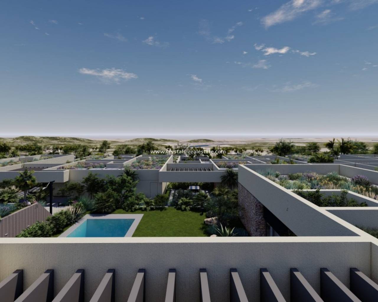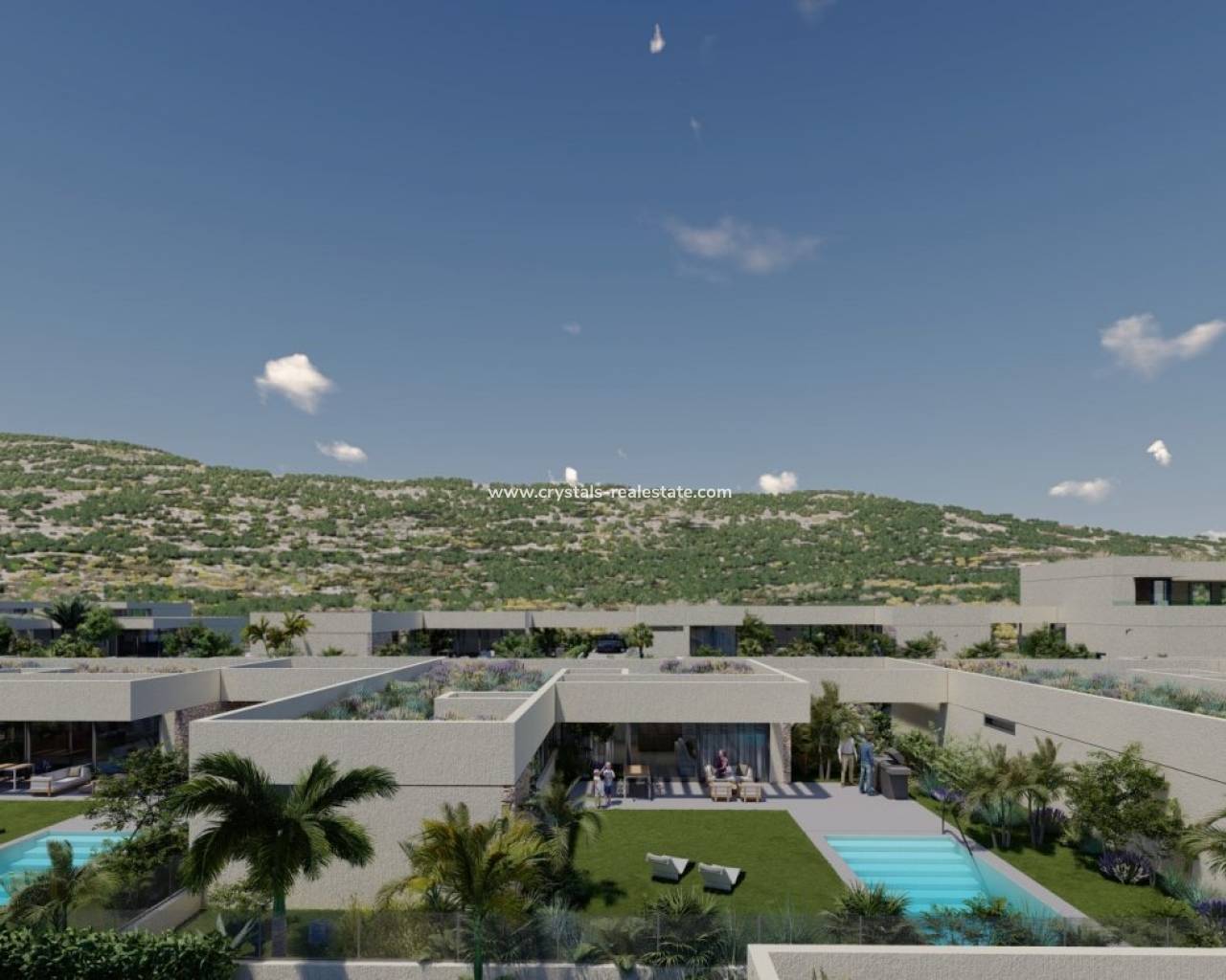 VILLAS DE NOUVELLE CONSTRUCTION À ALTOANA GOLF RESORT, MURCIE Nouvelle construction résidentielle de belles villas à Altaona Golf resort, Murcia. La villa comprend 4 chambres à coucher, 3 salles de bains, une cuisine ouverte sur le salon et un accès direct au jardin avec piscine privée et parking. Les villas sont conçues spécifiquement pour offrir des vues infinies sur le terrain de golf, les lacs et la campagne lointaine, de l'intérieur ou de l'extérieur. Les jardins et les terrasses orientés au sud vous permettent de profiter de la chaleur du soleil d'hiver, et les grandes baies vitrées offrent des vues supplémentaires sur la région depuis le confort de l'intérieur. Les villas ont été conçues pour maximiser le confort, l'intimité et l'efficacité. Des plantes indigènes ont été placées sur les toits pour créer la sensation d'un autre espace naturel. Situé dans un environnement privilégié où l'on peut vivre tranquillement, en contact avec la nature et les montagnes, on obtient qualité de vie, air frais et espaces ouverts. Cette résidence exclusive de nouvelle construction est située à Altaona Golf, à seulement 15 minutes en voiture du centre de la capitale de Murcie et à 15 minutes des plages. Vous pourrez profiter de la tranquillité et de la sécurité offertes par le terrain de golf de 18 trous et du confort de vivre à proximité de tous les services. Le complexe spacieux comprend toutes sortes de services tels qu'un centre commercial, des courts de tennis, de paddle et de basket. La porte d'entrée est toujours gardée, ce qui fait d'Altaona un endroit où les enfants peuvent jouer dehors en toute sécurité. Au total, quelque 500 maisons s'ajoutent pour constituer le complexe Altaona, réparties sur une superficie de 3,6 millions de m2. Voici quelques points forts de la région : - Centre de Murcie : 15 minutes. - Plage : 20 minutes. - Aéroport de Corvera : 20 minutes. - Aéroport d'Alicante : 45 minutes. - Centre commercial (La Alberca) : 8 minutes. - Hôpital : 10 minutes