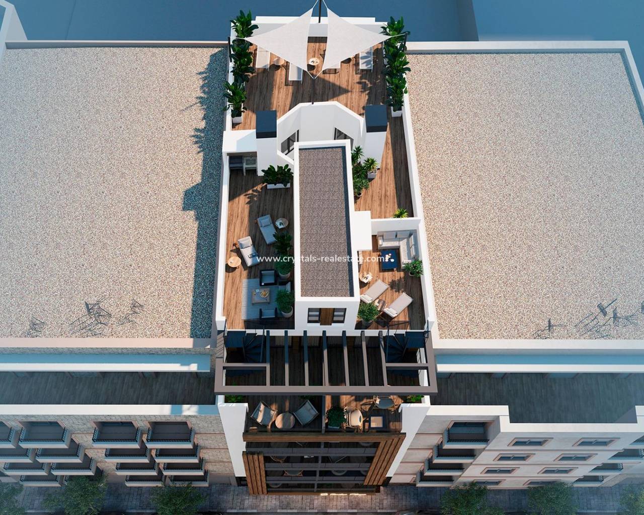 Appartements modernes à seulement 250 mètres de Playa del Cura à Torrevieja Nouveau programme immobilier exclusif au cœur de Torrevieja Ce projet résidentiel exclusif de 12 appartements modernes est situé à seulement 250 mètres de Playa del Cura, l'une des plages les plus populaires de Torrevieja. Conçu dans un équilibre parfait entre élégance, fonctionnalité et style de vie méditerranéen, le bâtiment offre une variété d'agencements avec 1 ou 2 chambres, y compris des appartements avec terrasses et des penthouses avec solariums privés. Son emplacement central permet d'accéder facilement aux commerces, restaurants, zones de loisirs et à tous les services essentiels, tout en conservant une sensation de confort et de tranquillité. Des équipements haut de gamme pour un style de vie moderne Le complexe comprend 130 m² d'espaces communs conçus pour la détente et les loisirs. Les résidents peuvent profiter : D'une piscine au rez-de-chaussée avec un espace pour les enfants D'une salle de sport et d'un sauna D'un solarium sur le toit avec des espaces de détente et une végétation luxuriante Chaque appartement est construit avec des matériaux et des finitions de haute qualité, garantissant à la fois confort et durabilité. Les caractéristiques comprennent : Salles de bains entièrement équipées avec parois de douche Pré-installation de la climatisation gainable Menuiserie extérieure en PVC de haute qualité avec vitrage à contrôle solaire Porte d'entrée renforcée La vie animée de Torrevieja Torrevieja est une ville côtière animée de la Costa Blanca, réputée pour ses activités culturelles et récréatives tout au long de l'année. Avec plus de 300 jours d'ensoleillement par an et un climat méditerranéen doux, la région est idéale pour les amateurs de plage, les passionnés de plein air et ceux qui recherchent un style de vie dynamique. La ville offre également un large éventail de services, une cuisine internationale, des marinas et une promenade animée. Emplacement privilégié avec une excellente connectivité Le complexe est stratégiquement situé et permet d'accéder facilement aux principaux points d'intérêt : Aéroport d'Alicante : 45 km Parcours de golf : 7-10 km Centre commercial Zenia Boulevard : 8 km Marina et port de Torrevieja : 2 km Votre maison idéale en bord de mer Que vous recherchiez une résidence permanente, une maison de vacances ou un bien immobilier à potentiel locatif, ces appartements modernes à Torrevieja offrent une excellente opportunité d'investir dans le style de vie de la Costa Blanca. Contactez-nous dès aujourd'hui pour organiser une visite et réserver votre appartement moderne à quelques pas de Playa del Cura.