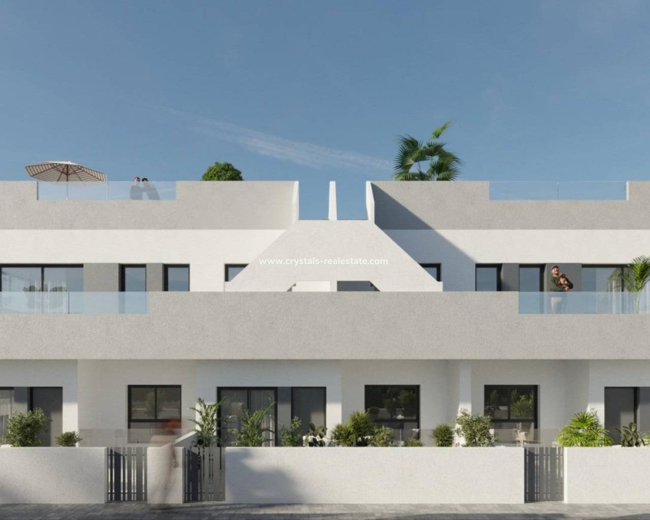Complexe résidentiel neuf à Los Balcones, Torrevieja Maisons modernes dans un emplacement privilégié Ce nouveau développement exclusif à Los Balcones, Torrevieja, se compose de 20 bungalows modernes, parfaitement conçus pour le confort et le style. Situé à seulement 4 km des plages de Torrevieja et à proximité des commerces, des restaurants et des services essentiels, ce projet offre un cadre idéal pour vivre à l'année ou passer des vacances sur la Costa Blanca. Los Balcones est l'un des quartiers résidentiels les plus prisés de Torrevieja, offrant une atmosphère paisible tout en étant à quelques minutes en voiture du centre-ville animé. Le quartier dispose de supermarchés, de commodités locales et d'un hôpital public, avec des liaisons régulières en bus vers la ville. Des agencements adaptés à votre style de vie Bungalows au rez-de-chaussée : 3 chambres et 3 salles de bains, dont une chambre principale avec salle de bains attenante au rez-de-chaussée, salon ouvert avec cuisine, toilettes pour invités et terrasse spacieuse. Un escalier mène au sous-sol où se trouvent 2 chambres supplémentaires, 2 salles de bains, une buanderie et un patio. Bungalows au dernier étage : 2 chambres, 2 salles de bains, cuisine ouverte avec grand salon, terrasse et solarium privé, idéal pour profiter du soleil méditerranéen. Toutes les maisons disposent d'une place de parking privée. Finitions de haute qualité et équipements de confort Chaque bungalow a été conçu avec des spécifications haut de gamme pour garantir un confort maximal : Porte d'entrée blindée et volets motorisés en aluminium Fenêtres à double vitrage avec contrôle solaire Climatisation canalisée entièrement installée Système d'eau chaude aérothermique Cuisine équipée avec appareils électroménagers Éclairage LED à l'intérieur et à l'extérieur Salles de bains avec meubles, miroirs et parois de douche Système d'alarme avec détecteurs et unité centrale Équipements collectifs exclusifs Le complexe résidentiel dispose de magnifiques jardins paysagers, d'une piscine commune à deux niveaux et d'une salle de sport entièrement équipée, créant ainsi un environnement idéal pour se détendre et socialiser. Excellente connectivité sur la Costa Blanca Le complexe bénéficie d'excellentes liaisons de transport : Plages : 4 km Aéroport d'Alicante : 55 km (40 minutes) Aéroport de Murcie : 65 km (1 heure) Parcours de golf Villamartín : 9 km Port de plaisance de Torrevieja : 5 km Votre nouvelle maison à Torrevieja vous attend Avec son design moderne, ses finitions de haute qualité et son emplacement privilégié, ce complexe résidentiel à Los Balcones est le choix idéal pour une nouvelle vie au bord de la Méditerranée. Contactez-nous dès aujourd'hui pour organiser une visite et acquérir la propriété de vos rêves à Torrevieja.
