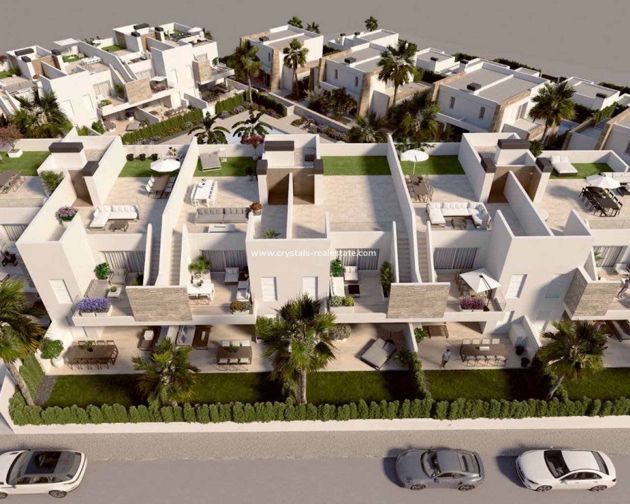COMPLEXE RÉSIDENTIEL DE NOUVELLE CONSTRUCTION À ALGORFA Nouveau complexe résidentiel de villas et d'appartements indépendants ou jumelés avec une superbe piscine commune et des espaces verts dans le golf de La Finca, Algorfa. Ces appartements de plain-pied ensoleillés sont distribués en deux blocs, avec 2 et 3 chambres, 2 salles de bains, une cuisine ouverte sur le salon, des armoires encastrées. Bungalows au rez-de-chaussée avec jardin privé et bungalows au dernier étage avec solarium privé. Une option parking souterrain et débarras à un coût supplémentaire. Complexe résidentiel situé dans La Finca Golf resort, dans la municipalité d'Algorfa, dans la région de Vega Baja de la Costa Blanca Sud. À seulement 15 minutes en voiture des plages de sable de Guardamar del Segura, et à seulement 35 minutes de l'aéroport d'Alicante. Les grandes villes d'Almoradi, Benijófar et Ciudad Quesada sont à une courte distance en voiture. Torrevieja et Orihuela Costa, avec leurs grands centres commerciaux, sont à 15 minutes.
