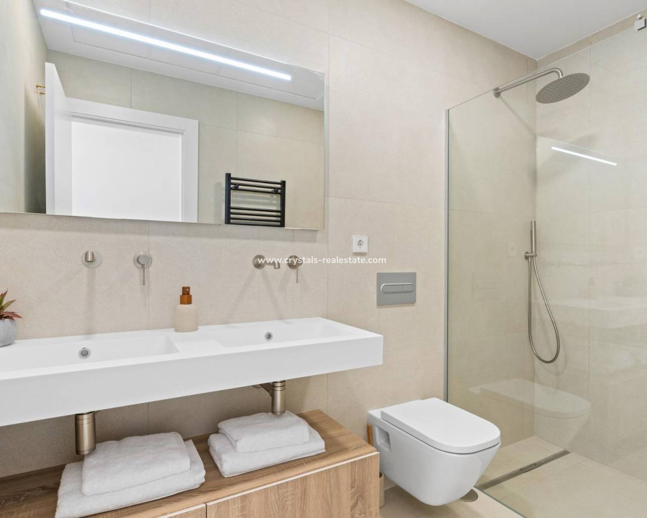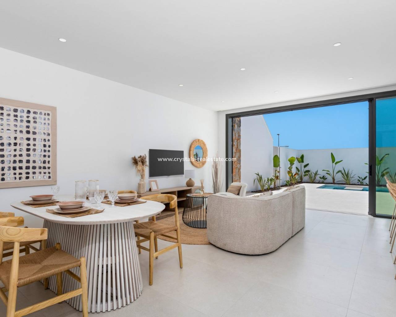 Villas neuves près du Serena Golf à Los Alcazares Villas modernes dans un emplacement privilégié en bord de mer et près d'un golf Ce projet résidentiel exclusif propose des villas modernes situées à Los Alcazares, à proximité du prestigieux Serena Golf et à seulement 1,2 km des plages de sable de la Mar Menor. Situées dans l'une des zones les plus attrayantes de la région de Murcie, ces maisons allient un design contemporain, le confort et un excellent emplacement à proximité de la mer, du golf et de tous les services quotidiens. Los Alcazares est une ville côtière bien établie, connue pour son style de vie détendu, sa longue promenade, ses sports nautiques et son climat doux tout au long de l'année. Conception de plain-pied avec espaces extérieurs privés Le complexe comprend des villas élégantes de 3 chambres et 2 salles de bains, disponibles en deux tailles différentes d'environ 106 m² et 130 m². Le modèle plus grand comprend également des toilettes supplémentaires pour les invités. Toutes les villas sont conçues sur un seul étage, offrant un cadre de vie pratique et confortable. La cuisine ouverte, la salle à manger et le salon communiquent directement avec une terrasse et un jardin privé avec piscine, créant un espace idéal pour la vie à l'intérieur et à l'extérieur. Chaque propriété comprend également un solarium privé et un parking sur le terrain. Finitions de haute qualité et équipements modernes Ces villas sont construites avec des matériaux de haute qualité et équipées de fonctionnalités modernes. Les cuisines entièrement équipées sont disponibles en finition blanche brillante ou bois et comprennent des plans de travail en quartz, un évier en acier inoxydable, une plaque à induction avec hotte intégrée, un four, un micro-ondes, un lave-linge, un réfrigérateur intégré et un lave-vaisselle. Les salles de bains sont équipées de meubles, de miroirs, d'éclairage et de sèche-serviettes électriques. Les équipements supplémentaires comprennent des stores électriques dans les chambres, un éclairage LED dans toute la propriété et un système de climatisation complet par conduits de Fujitsu. Piscine privée et confort économe en énergie Chaque villa comprend une piscine privée avec un revêtement en carreaux de céramique bleus, des marches intégrées et un éclairage LED blanc. La piscine est pré-équipée pour l'installation d'une pompe à chaleur. La combinaison d'une climatisation efficace, d'une construction moderne et d'une conception bien pensée garantit un confort tout au long de l'année. Excellente connectivité et distances clés Les villas se trouvent à quelques pas du centre-ville de Los Alcazares et à proximité du Serena Golf. La plage est à environ 1,2 km. La ville de Carthagène, située à environ 20 km, offre une scène culturelle et gastronomique riche. L'aéroport international de Murcie-Corvera est à environ 22 km et l'aéroport d'Alicante à environ 90 km. Plusieurs terrains de golf et marinas se trouvent également à proximité, ce qui rend cet emplacement idéal pour y vivre à l'année ou y passer ses vacances. Votre maison idéale au bord de la mer et du golf Si vous recherchez une villa moderne neuve près de la plage et du golf à Los Alcazares, contactez-nous dès aujourd'hui pour obtenir plus d'informations ou organiser une visite privée.