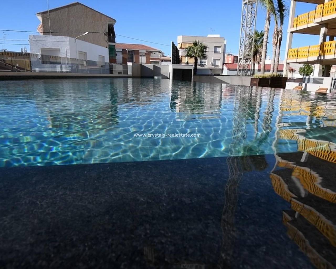 NOUVELLE CONSTRUCTION RÉSIDENTIELLE À SAN PEDRO DEL PINATAR Nouveau complexe résidentiel d'appartements modernes et de penthouses à San Pedro Del Pinatar. Appartements et penthouses avec 2 et 3 chambres à coucher, 2 salles de bains, avec cuisine ouverte entièrement équipée avec des produits blancs - Bosch ou Siemens, espace de vie, grandes terrasses, armoires encastrées, salles de bains entièrement équipées avec chauffage au sol, climatisation, volets électriques, rangement fermé, place de parking avec prise 16 Amp pour les voitures électriques. Magnifique jardin commun avec gazon artificiel et piscine à débordement avec pompe à chaleur. La situation privilégiée de San Pedro del Pinatar sur la Mar Menor et le littoral méditerranéen attire les amateurs de voile et de sports nautiques, avec un port de plaisance et des clubs de voile, tandis que les plages et les bains de boue naturels attirent ceux qui recherchent le soleil, la mer et le sable en toute sécurité. San Pedro del Pinatar dispose d'une communauté bien établie et offre une excellente gamme d'activités, notamment une piscine couverte et des installations sportives, ainsi qu'un programme d'activités sociales tout au long de l'année grâce à un climat hivernal agréable. Les bienfaits des bains de boue, typiques de la région, ou les eaux calmes de la Mar Menor, ont favorisé la croissance de Lo Pagán, qui dispose actuellement de toutes sortes de commodités. De plus, il bénéficie d'un excellent emplacement, à seulement 5 minutes du centre commercial Dos Mares. L'aéroport de Murcia/Corvera se trouve à 30 minutes et celui d'Alicante à une heure de route.