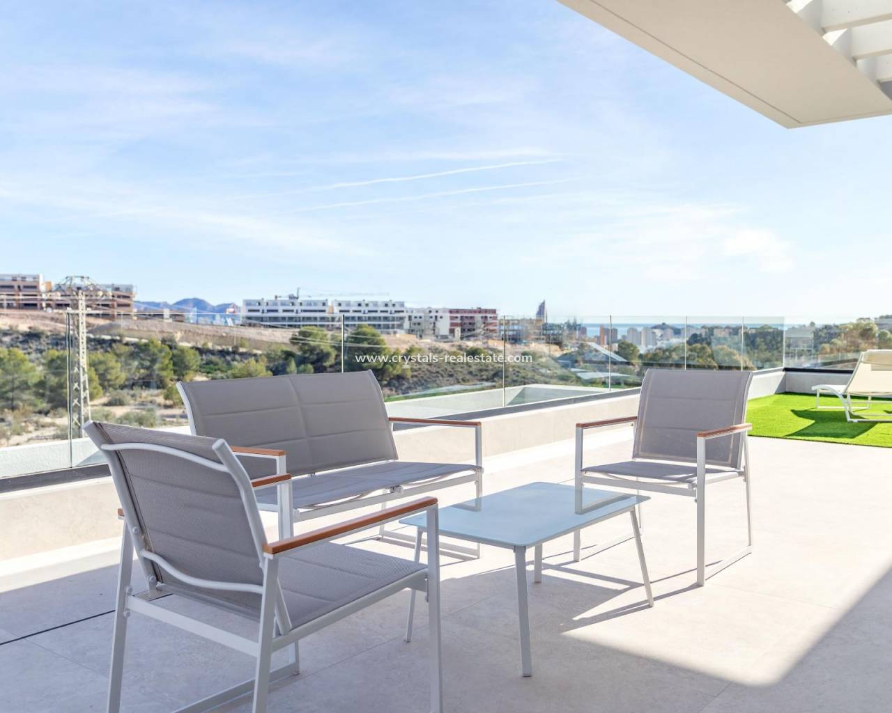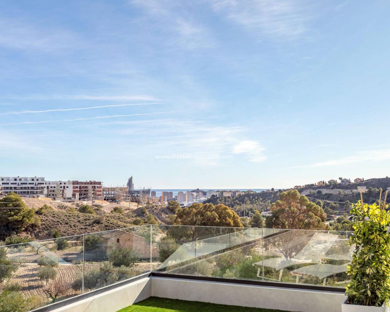 NIEUWBOUW WOONCOMPLEX IN FINESTRAT Nieuwbouw uniek en exclusief wooncomplex in Balcon de Finestrat. Dit complex bestaat uit moderne appartementen en penthouses met 2 slaapkamers, 2 badkamers, open keuken met woon- en eetgedeelte en terrassen. Penthouses met privésolarium. Elke woning heeft een ondergrondse parkeerplaats en berging. Omheind wooncomplex met gemeenschappelijk zwembad om te genieten van een van de beste locaties aan de Costa Blanca. Het is een geweldige kans en voorrecht om te kunnen leven met deze omgeving van golf en strand, dicht bij alle voorzieningen van alle diensten beschouwd als een van de beste plaatsen om te investeren. Finestrat ligt in de regio Marina Baixa aan de Costa Blanca. Benidorm ligt op slechts vijf minuten rijden van de woningen en biedt alle voorzieningen die je nodig hebt, zoals winkels, bars, restaurants, supermarkten, banken, apotheken en verschillende internationale privéscholen. Vlakbij de stranden van Levante, Poniente en Cala de Finestrat, met een lengte van meer dan 6 km die tot de beste stranden van Europa behoren, bekroond door de Europese Unie met blauwe vlaggen. Alle recreatieve diensten, zoals de themaparken van Aqua Natura, Terra Mítica, Terra Natura, Aqualandia en Mundomar, Sierra Cortina en Villaitana Golfbanen, wandelen en klimmen in Puig Campana een onvergelijkbare natuurlijke omgeving of genieten van nautische sporten. Afstand tot de zee 4 km, tot de luchthaven 26 km en tot de golf 1km. Complex gelegen op 40 minuten van de luchthaven van Alicante.