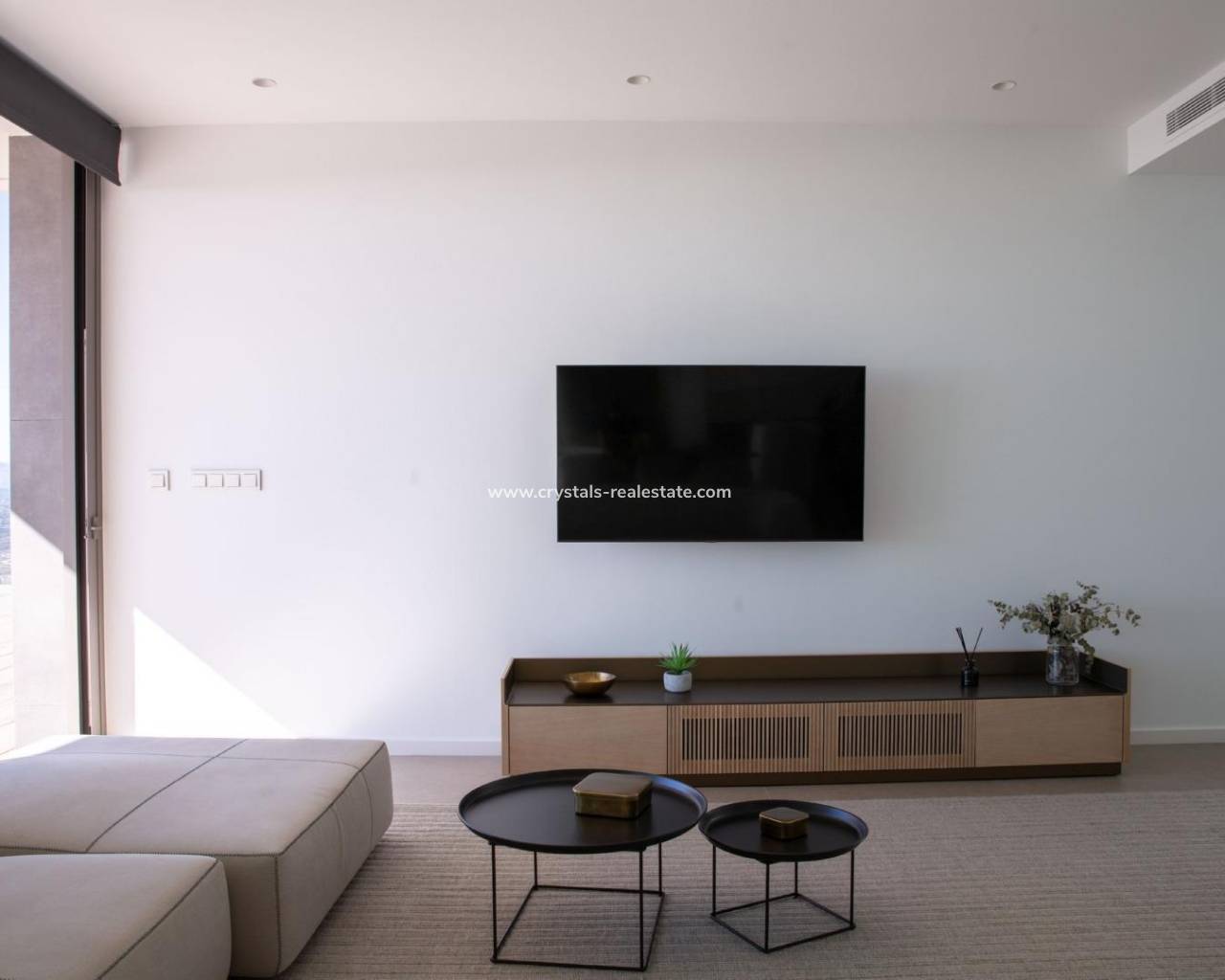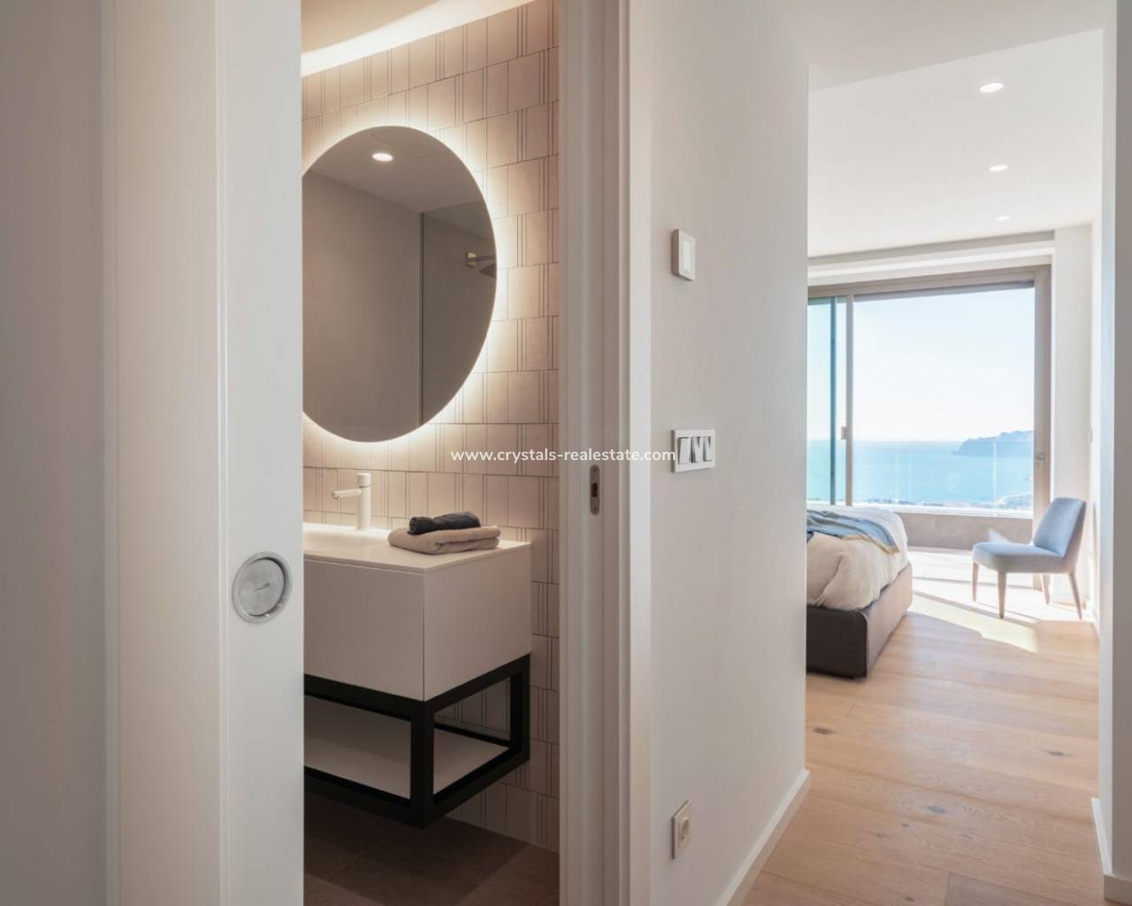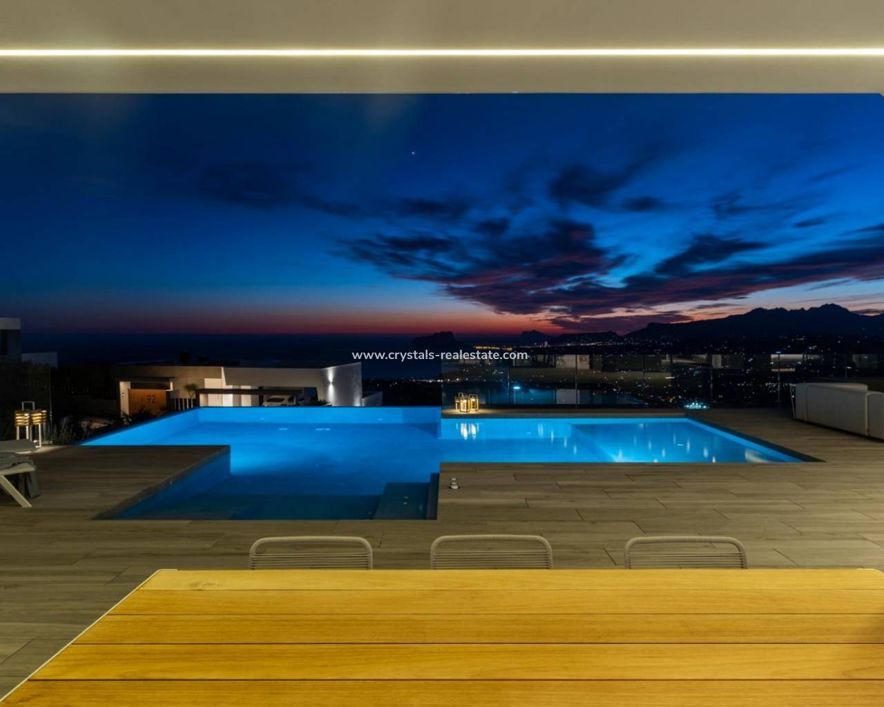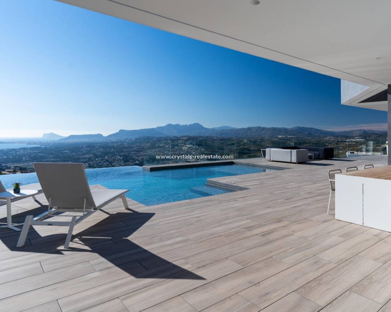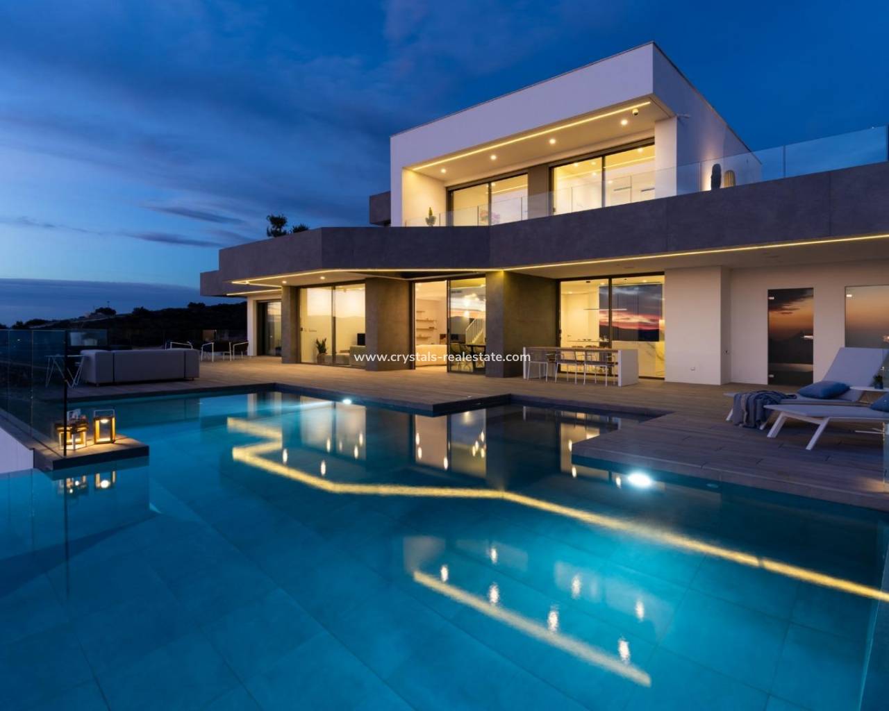 NIEUWBOUW LUXE VILLA IN CUMBRE DEL SOL Nieuwbouw iconische villa in Benitachell. Het ontwerp uit de 21e eeuw past perfect in de exclusieve omgeving van Residentieel Resort Cumbre del Sol. Het is gebouwd op een perceel van 1168 m2, waar je, omdat de villa op het zuidwesten ligt, kunt genieten van prachtige zonsondergangen. Alles aan deze villa schreeuwt kwaliteit en stijl uit, met een intelligent ontwerp dat een praktische indeling van de villa biedt die het uitzonderlijke uitzicht op de Middellandse Zee nog meer optimaliseert. Een huis met veel ruimtes om te genieten van het loungen en het gezinsleven aan zee. Er zijn verschillende kamers die allemaal met elkaar verbonden zijn om verschillende momenten van de dag in verschillende settings te kunnen beleven. Een eetkamer en woonkamer, een keuken met een centraal eiland waar je kunt genieten van een perfect ontbijt, en een grote zomerveranda met een BBQ. Al deze kamers zijn zo ingericht dat je kunt genieten van een goed gesprek, belangrijke familiegebeurtenissen kunt vieren of gewoon kunt ontspannen terwijl je naar de zee kijkt. De grote slaapkamer is ontworpen met het oog op comfort en ontspanning. Het is een privéruimte met een grote eigen badkamer met bad en douche met uitzicht op zee. Er is ook een grote inloopkast en toegang tot een privéterras. Cumbre del Sol ligt in Benitachell in het hart van de berg la Llorenca, ten noorden van de Costa Blanca. Het ligt tussen de twee kustplaatsen Javea en Moraira en is omgeven door uitzonderlijke beschermde gebieden zoals het natuurpark La Granadella. Het ligt vlakbij prachtige stranden en baaien en steden als Denia, Calpe en Altea. Of je nu geniet van een paar dagen, een vakantie, een seizoen of het hele jaar in ons luxe resort in Benitachell, je zult merken dat Cumbre del Sol aan al je verwachtingen voldoet. Golfers, duikers, natuurliefhebbers en zonaanbidders bevinden zich op slechts enkele minuten van de tientallen paradijselijke bestemmingen aan de Costa Blanca die onze urbanisatie omringen.