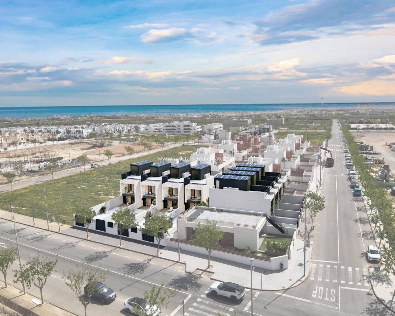 Duurzame nieuwbouwwoningen in Pilar de la Horadada, Costa Blanca Moderne woningen met technologie en energie-efficiëntie Ontdek deze exclusieve nieuwbouwproject in Pilar de la Horadada, een van de meest aantrekkelijke gebieden van de zuidelijke Costa Blanca. Dit project van geschakelde woningen combineert een eigentijds ontwerp, duurzaamheid en technologie om een comfortabele, efficiënte en verbonden levensstijl te bieden. De woonwijk bestaat uit 8 rijtjeshuizen met 3 slaapkamers en 3 badkamers, allemaal met een privézwembad, een solarium met zomerkeuken en parkeergelegenheid op het perceel. Bovendien wordt een van de woningen volledig gemeubileerd en instapklaar opgeleverd, met 2 slaapkamers en 2 badkamers. Elegante en functionele binnenruimtes Elke woning is met oog voor detail ontworpen: Volledig ingerichte keuken met Siemens-apparatuur of vergelijkbaar Badkamers met wastafels op een blad, mengkranen en veiligheidsglas Voorbereiding voor airconditioning via luchtkanalen Aerothermisch systeem voor sanitair warm water LED-verlichting binnen en buiten, inclusief decoratieve strips in de keuken, woonkamer en badkamers De woningen zijn ook voorzien van een domoticasysteem voor de bediening van zonwering, buitenverlichting, airconditioning en zwembad, evenals een fotovoltaïsche installatie met 6 zonnepanelen voor eigen gebruik. Privébuitenruimte en solarium met zomerkeuken Geniet van een ruime buitenruimte met: Privézwembad met douche en led-spots Tuin met geïntegreerde spots Zonneterras met aluminium buitenkeuken, werkblad en spoelbak Alles is ontworpen om het hele jaar door van het mediterrane klimaat te kunnen genieten. Pilar de la Horadada: levenskwaliteit op slechts enkele minuten van de zee Deze gemeente biedt een uitstekende infrastructuur, een levendig plaatselijk leven en stranden met blauwe vlag op slechts 2 km afstand. Daarnaast zijn er fietspaden, wandelroutes en tal van sportmogelijkheden. Belangrijkste afstanden: Strand van Torre de la Horadada: 2 km Golfbaan Lo Romero: 5 km Jachthaven Torre de la Horadada: 3 km Winkelcentrum Zenia Boulevard: 15 km Luchthaven Murcia (Corvera): 40 km Luchthaven Alicante: 55 km Vraag informatie aan en plan uw bezoek Dit is uw kans om een efficiënte, moderne woning dicht bij de zee te kopen in een van de meest gewilde gebieden van de Costa Blanca. Neem vandaag nog contact met ons op voor meer informatie of om een persoonlijk bezoek te plannen.
