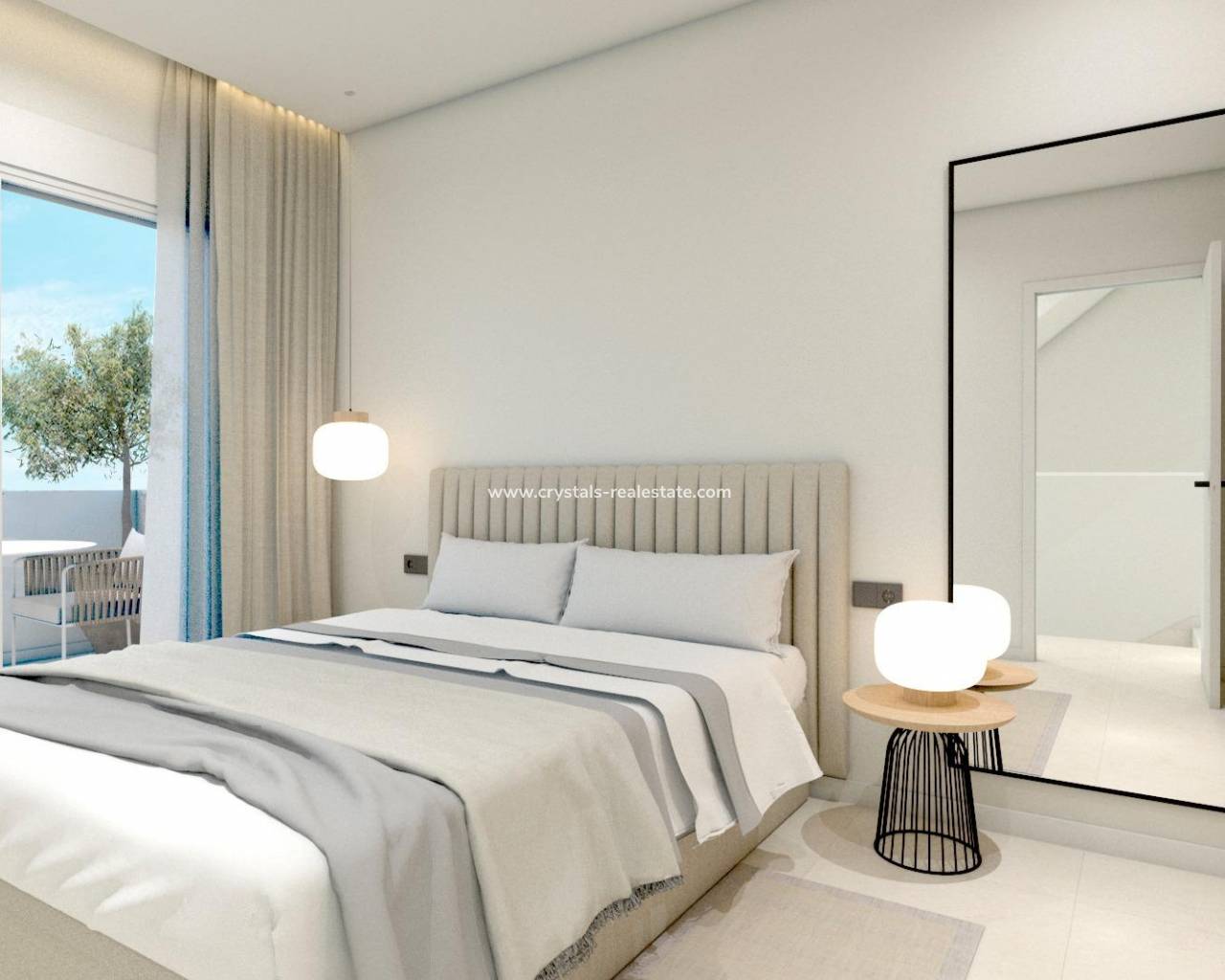 NIEUWBOUW VILLA IN TORRE DE LA HORADADA Nieuwbouw villa in residentieel complex met gemeenschappelijk zwembad in Torre de la Horadada gelegen op 800m van het strand. Villa heeft 4 slaapkamers, 3 badkamers, open keuken met zithoek, inbouwkasten, terras, privé solarium, tuin en parkeerplaats. Torre de la Horadada ligt ten zuiden van Alicante op een prachtige locatie aan de kust. De prachtige stranden van Torre de la Horadada en Mil Palmeras hebben fijn zand en een mooie boulevard. Er zijn veel restaurants, bars en winkels, ook watersporten, duiken en snorkelen. Het heeft goede verbindingen op slechts 40 minuten van de luchthavens van Alicante en Murcias Corvera, met grote commerciële winkelcentra en meerdere golfbanen allemaal binnen handbereik.