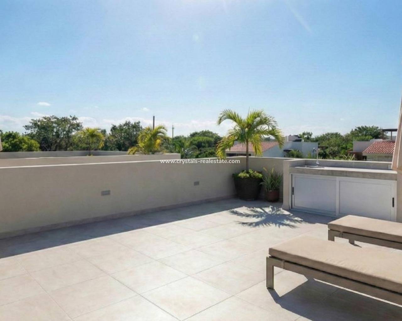 Moderne appartementen en penthouses met solarium in San Javier, vlakbij Mar Menor Toplocatie in San Javier, dicht bij het strand Dit nieuwe woonproject met 16 moderne woningen ligt in het bruisende stadje San Javier, Murcia, op slechts 3,5 km van het rustige water van Mar Menor. Het gebied staat bekend om zijn zon het hele jaar door, ontspannen levensstijl aan de kust en uitstekende voorzieningen. Op loopafstand vindt u supermarkten, restaurants, sportfaciliteiten en dagelijkse voorzieningen, waardoor dit een ideale plek is voor zowel permanent wonen als vakantie. De Middellandse Zeekust ligt op slechts 10 minuten rijden en biedt een breed scala aan stranden en boulevards. Keuze uit begane grond met tuin of bovenste verdieping met privésolarium Kopers kunnen kiezen tussen woningen op de begane grond met 3 slaapkamers en 2 badkamers, waarvan één ensuite, met een terras aan de voorzijde en een privétuin aan de achterzijde met zomerkeuken. Als alternatief bieden de woningen op de bovenste verdieping 2 slaapkamers en 2 badkamers, ook met één ensuite, een terras aan de voorzijde en een groot privésolarium met zomerkeuken, perfect om het hele jaar door van de zon te genieten. Elke indeling is zorgvuldig ontworpen om het buitenleven en het natuurlijke licht te maximaliseren. Aantrekkelijke gemeenschappelijke ruimtes om te ontspannen Het wooncomplex beschikt over een prachtig aangelegde gemeenschappelijke ruimte met een zwembad met jacuzzi, fietsenstalling en groene tuinen waar bewoners kunnen ontspannen en socializen in een rustige omgeving. Kwaliteitskenmerken ontworpen voor modern comfort Elke woning is gebouwd volgens hoge normen op het gebied van comfort en energie-efficiëntie. Het buitenschrijnwerk in antraciet PVC met thermische onderbreking en dubbele beglazing biedt uitstekende isolatie en bescherming tegen de zon. De keukens zijn volledig uitgerust met apparatuur. De woningen zijn voorzien van een voorinstallatie voor airconditioning en een aerothermisch systeem voor warm water, wat zorgt voor een lager energieverbruik. De badkamers zijn voorzien van een wastafelmeubel, spiegel en douchewand. Elke woning beschikt ook over een eigen parkeerplaats. Uitstekende verbindingen en bezienswaardigheden in de buurt San Javier biedt uitstekende wegverbindingen en gemakkelijke toegang tot belangrijke bestemmingen in de regio. Stranden van Mar Menor 3,5 km Stranden van de Middellandse Zee 10 km Roda Golf en Mar Menor Golf 8 km Jachthaven van Los Alcazares 7 km Luchthaven Murcia Corvera 30 km Luchthaven Alicante 75 km Winkelcentrum Zenia Boulevard 30 km Geniet van de mediterrane levensstijl in San Javier Dit project biedt de perfecte combinatie van locatie, comfort en buitenleven dicht bij de zee en golfbanen. Neem vandaag nog contact met ons op voor meer informatie of om een bezoek te regelen aan uw toekomstige woning in San Javier.