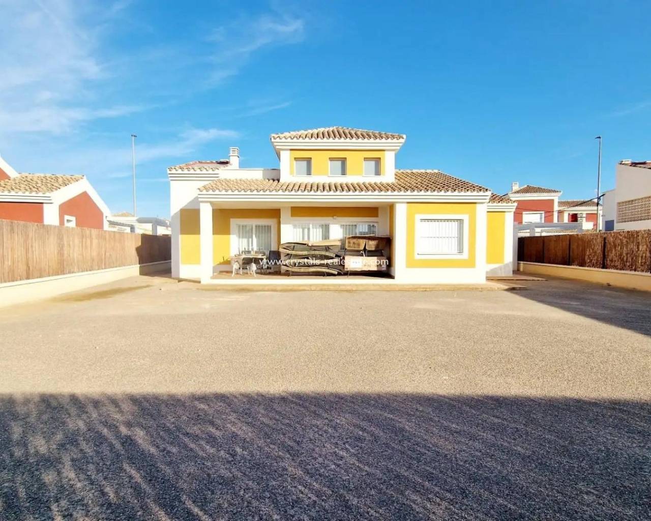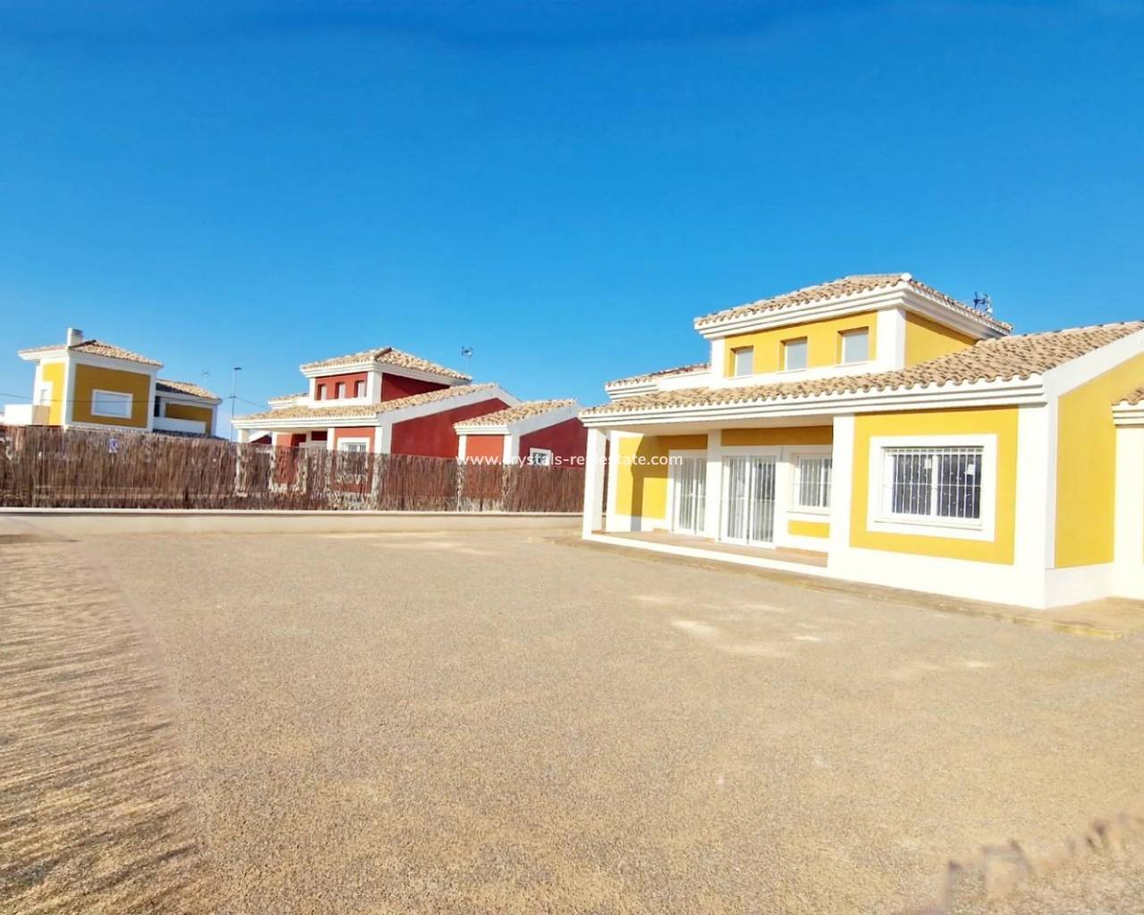 New Build Villas on Spacious 500+ m² Plots in Lorca New Mediterranean style Villas in a Secure and Tranquil Residential Area Discover an exclusive development of independent villas on plots of over 500m², strategically located in the southeast of Spain. These homes offer the perfect combination of countryside tranquility, proximity to the coast, and excellent road connections to major cities and airports. Nestled in a privileged setting on the Costa Cálida, this development benefits from year-round sunshine, making it an ideal location to enjoy the Mediterranean lifestyle. Spacious, Bright Homes with Private Gardens Designed for maximum comfort and relaxation, these villas feature open-plan living areas with large windows, seamlessly connecting indoor and outdoor spaces. The generous private garden offers the perfect setting for outdoor leisure, with the option to add a swimming pool and customize your landscaping. Choose from three villa models, available in one or two-story layouts, with 3 or 4 bedrooms and 2 or 3 bathrooms. Each home includes a private solarium, allowing residents to take full advantage of the beautiful surroundings. A Secure and Well-Equipped Community This gated urbanization offers a 24-hour security service with controlled access, ensuring peace of mind for all residents. Designed with green living in mind, the community includes: Two large landscaped parks for relaxation and family activities. Dedicated sports and play areas to promote an active lifestyle. Tree-lined streets and a 3.5 km cycle path running along the perimeter of the urbanization. A commercial zone at the entrance, which will feature a restaurant, supermarket, gas station, and other essential services. High-Quality Finishes for Maximum Comfort Each villa is built with top-quality materials and modern installations, including: Pre-installation for ducted air conditioning Pre-installation for natural gas Security entrance door Double-glazed Climalit windows Fully fenced community with 24-hour surveillance Prime Location – Close to the Coast and City Amenities Situated in a newly developed area of Lorca municipality, these villas offer a natural and peaceful environment while maintaining easy access to key locations: Lorca city center – 10 km Águilas beaches – 20 km Murcia-Corvera Airport – 70 km Alicante Airport – 130 km Shopping centers and restaurants – 10 km Find Your Ideal Home in Costa Cálida With 50 homes already completed and a total of 320 planned, this is your opportunity to secure a new mediterranean style villa in a thriving new community. Whether for a permanent residence, holiday home, or investment, these properties offer excellent value in a prime location. Contact us today to learn more and arrange a visit!