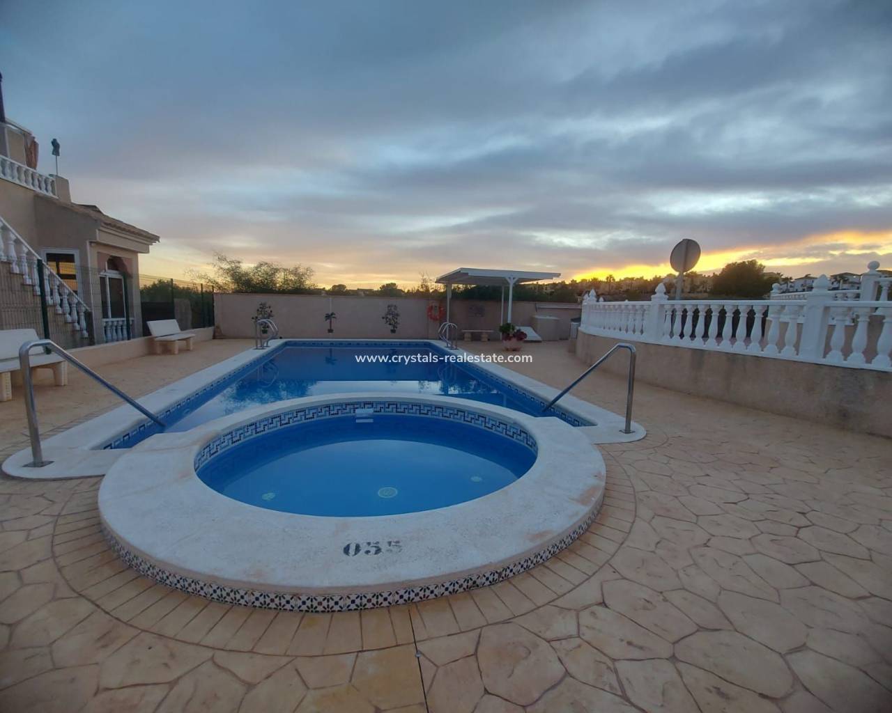 Charming traditional-style detached villa featuring single-level living, 3 bedrooms, and 1 bathroom. It includes a spacious living room with an open fireplace, a separate fitted kitchen, and a family bathroom. The villa is equipped with air conditioning and has a practical utility area along with a generous under build. Set amidst mature gardens, it boasts a large solarium perfect for sunbathing and a welcoming front terrace.