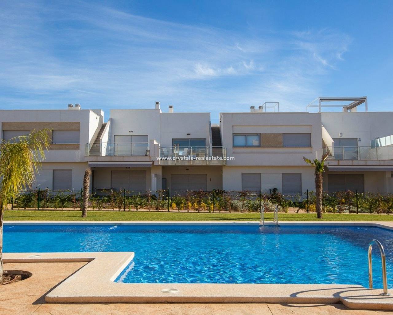 NEW BUILD RESIDENTIAL OF BUNGALOW APARTMENTS IN VISTABELLA New Build residential complex on bungalow apartments in Vistabella near the golf course. Complex with communal facilities and swimming pool consist of 2 and 3 bedrooms bungalows, on the ground floor with private garden and top floor with private solarium, open plan kitchen with the lounge area, fitted wardrobes, terrace. Each apartment has private parking. An options storeroom at an extra cost. At Vistabella Golf there is space for everyone. The course is designed so that each player can enjoy it from start to finish. Its undulating streets, strategic bunkers or lakes are some of the features that make it one of the most attractive designs in the area, where every stroke is a challenge and a pleasure for the senses. The 18 Holes of Vistabella Golf, par 72 and more than 6,000 meters in length have been designed following the guidelines of the modern fields with 4 tees of great amplitude in each hole, wide fairways and raised bunkers. The Vistabella Golf club house & restaurant & local bars & shops are within 5 minutes walk. The busy town of San Miguel de Salinas & Los Montesinos are 5 minutes drive away & the lovely Blue flag beaches at Guardamar are just 15 minutes drive away. Alicante airport is 35 minutes away & the new Corvera Murcia airport is 45 minutes away.