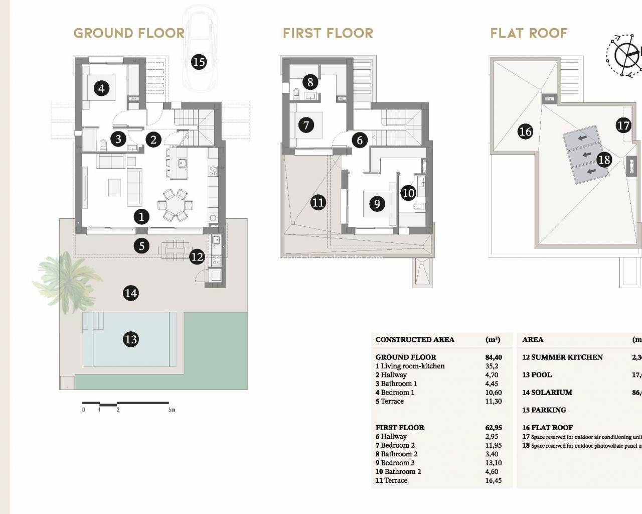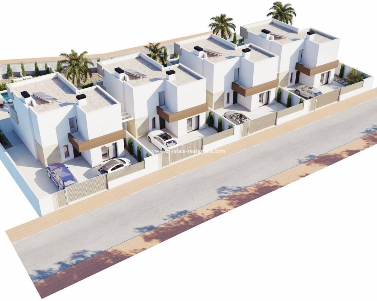 Modern New Build Villas Near the Beach in Santiago de la Ribera Contemporary coastal living in the Costa Cálida Discover an exclusive development of independent villas in Santiago de la Ribera, located just 750 m from the beautiful shores of the Mar Menor. This charming coastal town in the Murcia region is known for its relaxed Mediterranean lifestyle, clean sandy beaches, and year round sunshine. Here, you can enjoy the perfect blend of privacy, comfort and proximity to all essential amenities, leisure options and outdoor activities. Whether as a permanent residence, a holiday home or an investment with strong rental potential, these villas offer a superb opportunity to embrace coastal living in one of the most desirable areas of the Costa Cálida. Elegant design and functional layout Designed with a modern architectural style and high functionality, each villa is distributed across two floors to maximize space and natural light. The homes include 3 spacious bedrooms, including one on the ground floor 3 fully equipped bathrooms, all ensuite Private garden and swimming pool First floor terrace ideal for sunbathing and relaxation Private parking with motorized gate This smart layout ensures comfort and privacy while providing generous outdoor spaces for entertaining, dining or simply enjoying the Mediterranean climate. High quality finishes and premium features These properties have been built to high standards with top quality finishes and modern installations, including Reinforced security entrance door Motorized shutters Fully furnished kitchen with appliances included Bathrooms with furniture, mirrors and underfloor heating Pre installation for ducted air conditioning Private swimming pool Two photovoltaic solar panels with micro inverter Designed for year round use, these homes ensure efficiency, comfort and style in every corner. Excellent location close to the sea and services Situated in a quiet residential area, yet surrounded by services, this development offers unbeatable convenience with quick access to beaches, marinas, shops and golf courses. Distances include Mar Menor beaches 0.75 km La Ribera Shopping Centre 2 km Roda Golf 5 km Lo Pagán Marina 4 km Dos Mares Shopping Centre 3 km San Javier Airport 6 km Murcia 40 km Cartagena 30 km The area is perfect for nature lovers, water sports enthusiasts and anyone seeking a vibrant yet peaceful lifestyle by the sea. Make your Mediterranean dream a reality Do not miss the chance to own a stylish new build villa in one of the most sought after coastal towns in Murcia. Contact us today for more information or to book a viewing.