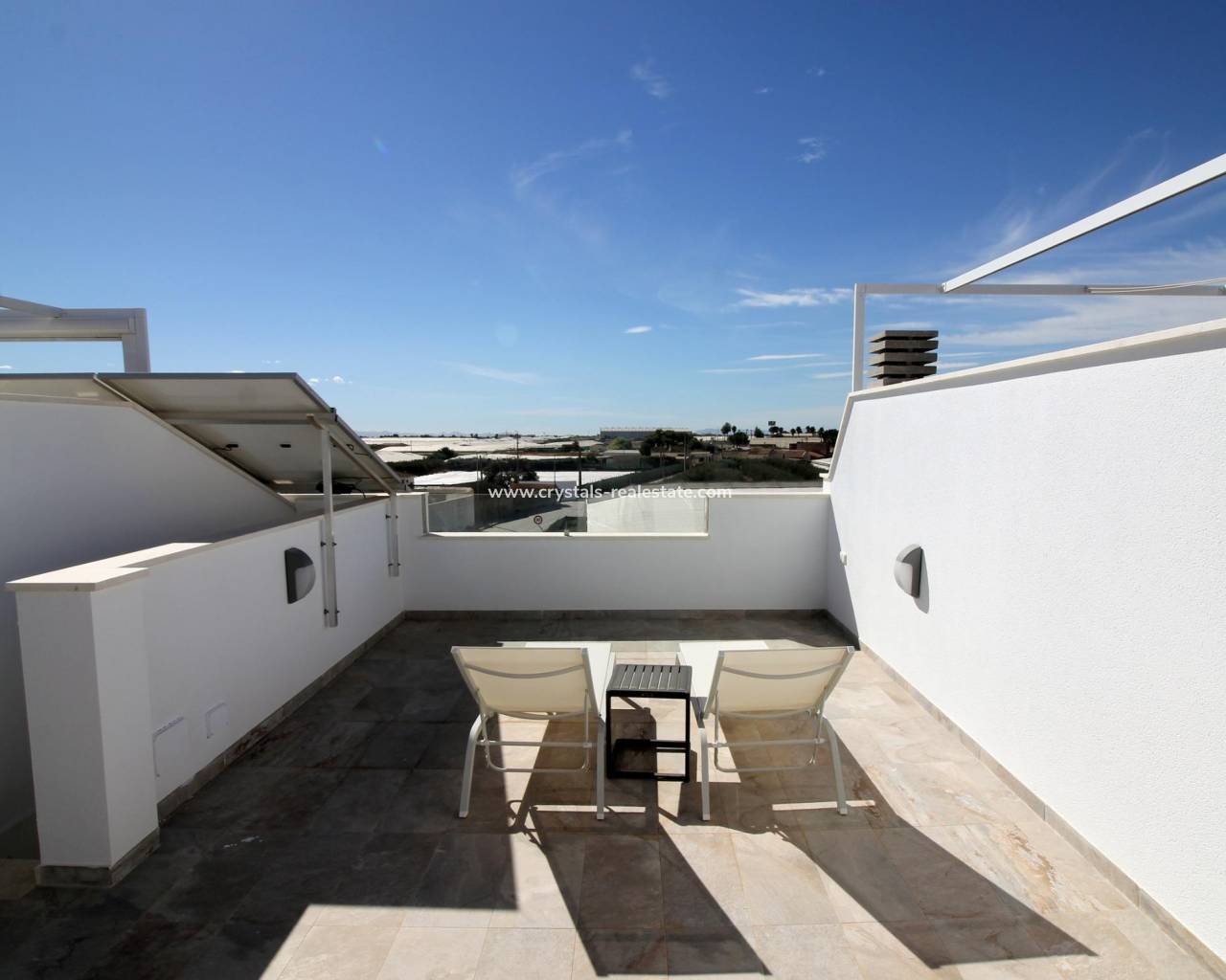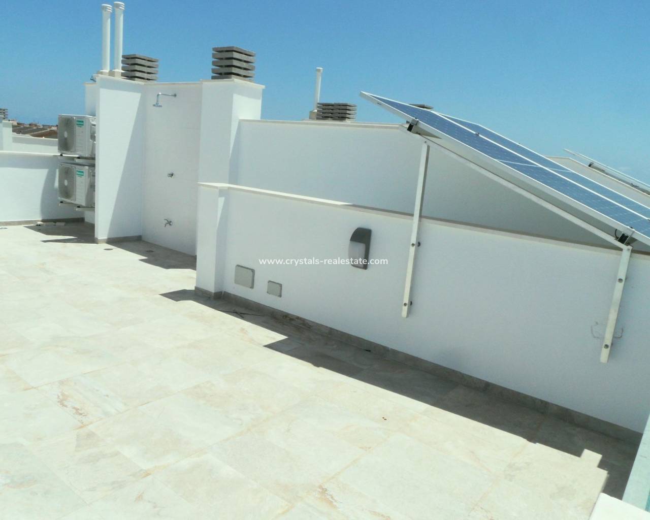 NEW BUILD SEMI-DETACHED TOWNHOUSE IN PILAR DE LA HORADADA New Build modern townhouses built in a quiet part of Pilar de la Horadada with proximity to everything you need. Townhouses has 3 bedrooms, 2 bathrooms, open plan kitchen, living room with direct access to the cozy pool area, terrace at the back with parking space , terrace and large roof solarium. Pilar de la Horadada is a typical Spanish village in the most southern part of the Costa Blanca. The large main street has supermarkets, lots of shops, restaurants and bars and some lovely squares. The beautiful beaches of Torre de la Horadada and Mil Palmeras with fine sand promenade is just 5 minutes away. The airports of Corvera (Murcia) and Alicante are respectively 40 and 55 minutes away.