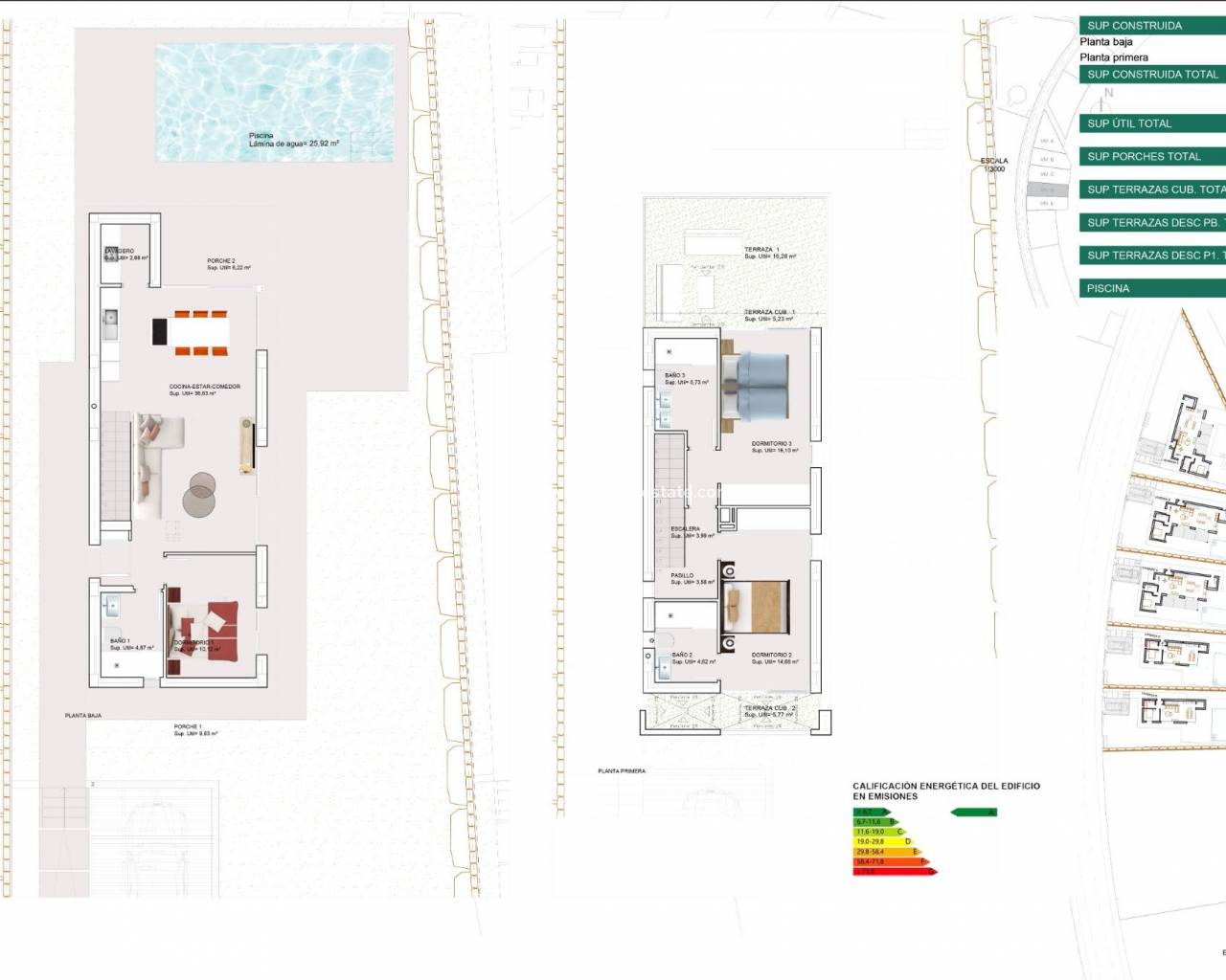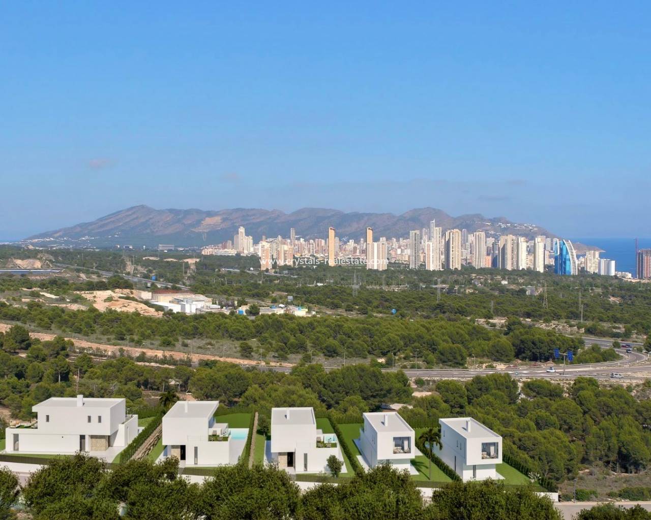 NEW BUILD VILLAS IN FINESTRAT WITH SEA VIEWS New Build Luxury villas in Sierra Cortina, Finestrat. Villas with 3 bedrooms and 3 bathrooms, open plan kitchen with lounge area, terrace with magnificent views over Benidorm, private garden with swimming pool and parking space. Villas build with top quality materials. Finestrat located in the Marina Baixa region of the Costa Blanca, close to neighbouring Benidorm and about 40 kilometres from the city of Alicante and the international airport. The village is situated on the mountainside of Puig Campana and offers beautiful views of the mountains, the coast and the Mediterranean Sea. Benidorm is just a five-minute drive from the properties and offers all the services you would need including shops, bars, restaurants, supermarkets, banks, pharmacies and several private international schools.
