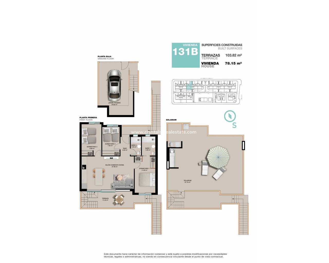 NEW BUILD RESIDENTIAL COMPLEX IN TORRE DE LA HORADADA New Build residential complex of bungalow apartments with communal pool in Torre de la Horadada located 800m from the beach. All properties has 3 bedrooms, 2 bathrooms, open plan kitchen with the lounge area, fitted wardrobes and terrace. All properties has private gardens and parking space. Plus bungalows on the top floor has private solarium. Torre de la Horadada is located south of Alicante in a beautiful location on the coast. The beautiful beaches of Torre de la Horadada and Mil Palmeras have fine sand beautiful promenade. There are lots of restaurants, bars and shops, also water sports, diving and snorkelling. It is well connected just 40 minutes from Alicante and Murcias Corvera airports, with large commercial shopping centres and multiple golf courses all within easy reach.