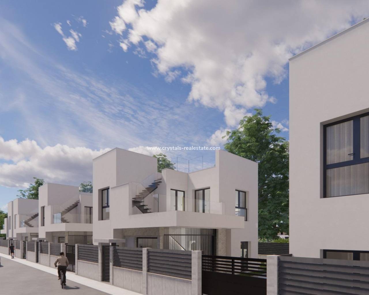 Modern New Build Villas in La Herrada Los Montesinos With Private Pool Exclusive Residential Project in a Peaceful Environment Located in the prestigious La Herrada urbanisation in Los Montesinos, this exclusive development of 16 modern villas offers privacy, comfort and an excellent quality of life. La Herrada is known for its quiet residential atmosphere, its proximity to daily services and its privileged setting between the famous salt lakes of Torrevieja and La Mata. It is an ideal location for those seeking a relaxed and healthy Mediterranean lifestyle in the south of the Costa Blanca. Contemporary Design With Optimised Interior Spaces Each villa has 110 m² of well planned living space distributed over two floors, designed to maximise natural light and functionality. Built on plots starting from 185 m², the properties offer generous outdoor areas perfect for sunbathing, entertaining or relaxing by the private pool. Comfortable Layout Across Two Floors The ground floor features an open plan living room with a fully integrated kitchen and direct access to the garden and pool area. This level also includes one bedroom, a full bathroom and a convenient laundry room. On the upper floor, there are two spacious bedrooms, each with its own bathroom, one of them en suite. Both bedrooms enjoy access to a private open terrace of 17 m². For those who want even more outdoor space, there is an optional rooftop solarium available at an additional cost. High Quality Finishes and Modern Features The villas include quality finishes such as bathroom furniture, mirrors, shower screens and underfloor heating in all bathrooms. There is pre installation for ducted air conditioning, a motorised vehicle entrance gate, private parking on the plot and a gated residential access via a private internal street. Prime Location Close to Key Amenities and Attractions Beaches of Guardamar and Torrevieja 9 km La Marquesa Golf, La Finca Golf and Vistabella Golf within 5 km Alicante Airport 29 km Natural parks, salt lakes, cycling routes and hiking trails nearby Live Comfortably in the Heart of the Costa Blanca These new build villas in Los Montesinos offer the perfect combination of modern comfort, natural surroundings and excellent accessibility. Whether you are looking for a permanent residence or a holiday home, this development provides everything you need to enjoy a peaceful and convenient Mediterranean lifestyle. Contact us today to arrange a viewing and secure your new home in La Herrada.