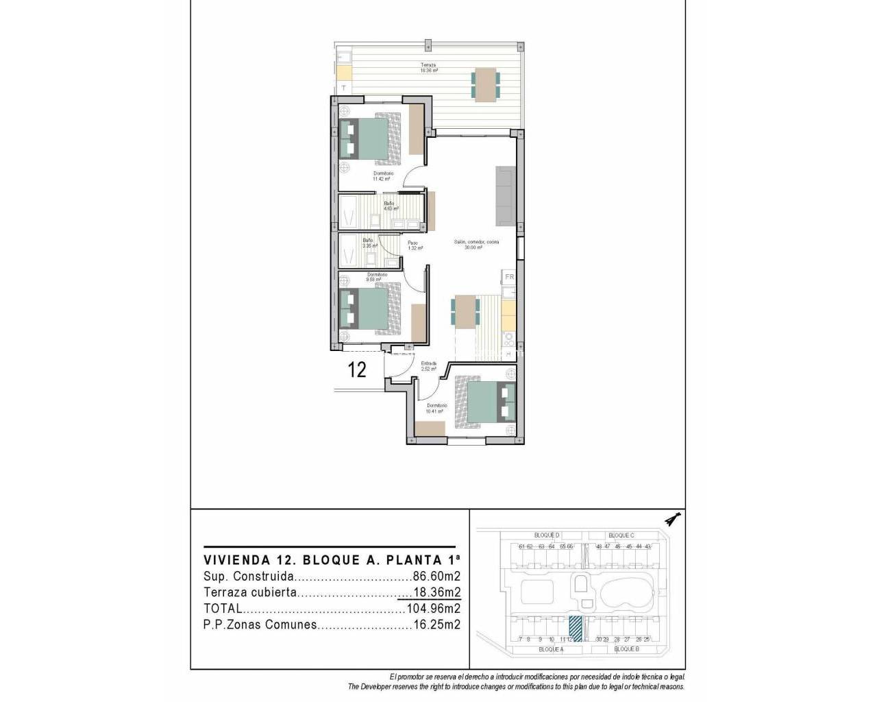 Modern New Build Apartments in San Cayetano, Torrepacheco, Murcia Contemporary Living in a Peaceful Mediterranean Setting This exclusive new residential complex is located in San Cayetano, Murcia, part of the municipality of Torre Pacheco, just 9 km from the sea and surrounded by several renowned golf courses. The project combines tranquility, comfort and contemporary design, offering an ideal environment for permanent living, holiday use or investment on the Costa Calida. The development consists of 72 apartments with 2 and 3 bedrooms and 2 bathrooms, one of them ensuite, distributed across four modern buildings. A second phase with bungalows and villas is also planned, adding further value and appeal to the area. Designed Communal Areas for Relaxation and Wellbeing Residents will enjoy carefully landscaped communal spaces that include two swimming pools, beautiful gardens and a fully equipped gym. These areas create a pleasant and social environment where neighbors can relax, exercise and enjoy the Mediterranean lifestyle. The residential complex also features 40 kW of photovoltaic solar panels that help support the community electricity costs, contributing to a more sustainable and energy efficient living environment. Apartments with Private Outdoor Spaces and Solarium Each apartment is designed to make the most of outdoor living. Ground floor properties include private gardens, first floor apartments offer spacious terraces, and top floor homes benefit from both a terrace and a private rooftop solarium. All properties include a summer kitchen on the terrace or solarium, perfect for enjoying the sun all year round. All homes come with an outdoor parking space and a private storage room in the basement, adding extra convenience and practicality. Quality Features and Energy Efficient Installations These new build apartments are delivered with quality finishes and modern installations to ensure comfort and functionality, including: Fully fitted kitchen with appliances Fully equipped bathrooms with furniture, mirror, lighting and shower screens Preinstallation for ducted air conditioning Aerothermal system for hot water The combination of modern materials and energy efficient systems makes these homes ideal for year round use. Excellent Location Close to Golf, Beaches and Services San Cayetano is a quiet and well connected village with local amenities, shops and services. Its strategic location allows easy access to beaches, golf courses and major transport links. Key distances to points of interest include: Mar Menor beaches 9 km Roda Golf 6 km La Serena Golf 14 km Los Alcazares 10 km Cartagena 30 km Murcia Corvera Airport 25 km Alicante Airport 90 km Secure Your Property in San Cayetano Today This modern residential complex offers an excellent opportunity to enjoy Mediterranean living in a peaceful yet well connected area. Contact us today for more information and reserve your new build apartment in San Cayetano.