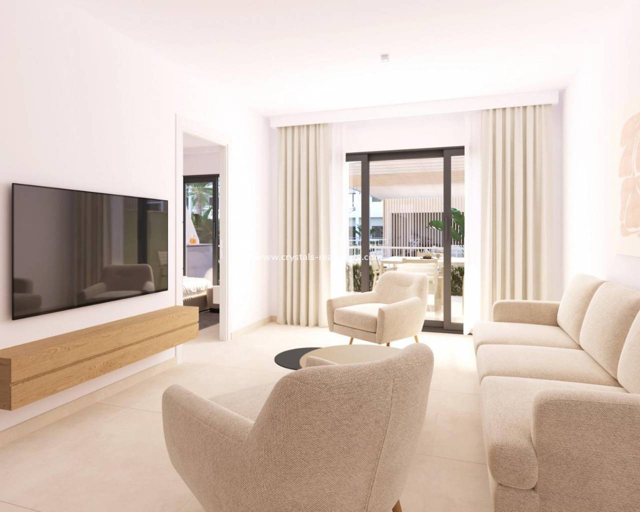 Modern New Build Apartments in San Cayetano, Torrepacheco, Murcia Contemporary Living in a Peaceful Mediterranean Setting This exclusive new residential complex is located in San Cayetano, Murcia, part of the municipality of Torre Pacheco, just 9 km from the sea and surrounded by several renowned golf courses. The project combines tranquility, comfort and contemporary design, offering an ideal environment for permanent living, holiday use or investment on the Costa Calida. The development consists of 72 apartments with 2 and 3 bedrooms and 2 bathrooms, one of them ensuite, distributed across four modern buildings. A second phase with bungalows and villas is also planned, adding further value and appeal to the area. Designed Communal Areas for Relaxation and Wellbeing Residents will enjoy carefully landscaped communal spaces that include two swimming pools, beautiful gardens and a fully equipped gym. These areas create a pleasant and social environment where neighbors can relax, exercise and enjoy the Mediterranean lifestyle. The residential complex also features 40 kW of photovoltaic solar panels that help support the community electricity costs, contributing to a more sustainable and energy efficient living environment. Apartments with Private Outdoor Spaces and Solarium Each apartment is designed to make the most of outdoor living. Ground floor properties include private gardens, first floor apartments offer spacious terraces, and top floor homes benefit from both a terrace and a private rooftop solarium. All properties include a summer kitchen on the terrace or solarium, perfect for enjoying the sun all year round. All homes come with an outdoor parking space and a private storage room in the basement, adding extra convenience and practicality. Quality Features and Energy Efficient Installations These new build apartments are delivered with quality finishes and modern installations to ensure comfort and functionality, including: Fully fitted kitchen with appliances Fully equipped bathrooms with furniture, mirror, lighting and shower screens Preinstallation for ducted air conditioning Aerothermal system for hot water The combination of modern materials and energy efficient systems makes these homes ideal for year round use. Excellent Location Close to Golf, Beaches and Services San Cayetano is a quiet and well connected village with local amenities, shops and services. Its strategic location allows easy access to beaches, golf courses and major transport links. Key distances to points of interest include: Mar Menor beaches 9 km Roda Golf 6 km La Serena Golf 14 km Los Alcazares 10 km Cartagena 30 km Murcia Corvera Airport 25 km Alicante Airport 90 km Secure Your Property in San Cayetano Today This modern residential complex offers an excellent opportunity to enjoy Mediterranean living in a peaceful yet well connected area. Contact us today for more information and reserve your new build apartment in San Cayetano.