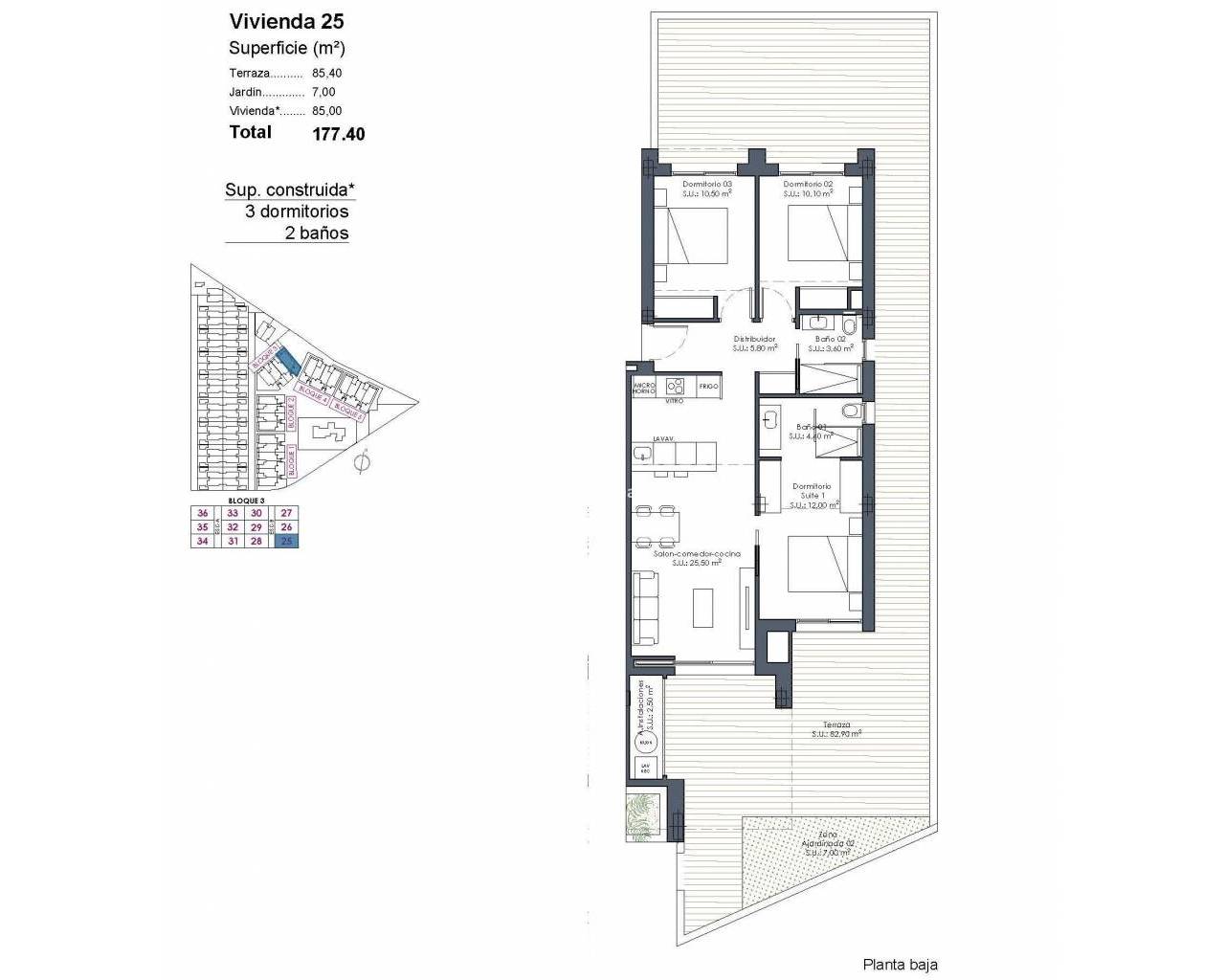 New Build Resort Apartments at La Serena Golf-Los Alcazares Near the Beach Modern Golf Front Living on the Costa Calida Discover this exclusive new build residential resort located at La Serena Golf in Los Alcazares. This contemporary development features 66 stylish apartments with 2 or 3 bedrooms and 2 bathrooms, one of them en suite, designed to offer comfort, elegance and an exceptional Mediterranean lifestyle just 300 meters from the Mar Menor. Los Alcazares is a charming coastal town known for its relaxed atmosphere, sandy beaches and long seaside promenade. With more than 300 days of sunshine per year, the area offers a perfect environment for outdoor living, water sports and golf. The town also provides a wide selection of restaurants, shops, marinas and sports facilities, making it a highly desirable destination for both permanent residence and holiday homes. Apartments with Terraces, Gardens and Private Solariums The residential complex offers several property types to suit different lifestyles. Buyers can choose between ground floor apartments with private gardens, middle floor homes with spacious terraces or penthouses with terraces and large rooftop solariums. The solariums include an outdoor shower and offer the option to add a summer kitchen and private jacuzzi, creating an ideal space for relaxation and entertaining while enjoying open views of the golf course and surrounding landscape. Each home has been designed with bright interiors and open plan living spaces that connect seamlessly with the outdoor areas. Resort Style Amenities and Exceptional Communal Areas One of the most distinctive features of this development is its resort style concept. Residents can enjoy a spectacular lagoon style swimming pool of approximately 190 m2 with beach style access and relaxing areas with Balinese beds. Additional communal facilities include landscaped gardens, a spa area, gym and sauna located in the basement level. The complex also offers a children playground, two petanque courts and communal restrooms near the pool area, creating a welcoming environment for residents and guests. Quality Finishes and Modern Features The apartments are built with modern materials and high quality specifications designed for comfort and style. Fully equipped kitchen with white glass finish appliances Bathrooms with vanity units, shower screens and backlit mirrors Motorized window shutters Basic lighting package Fully installed ducted air conditioning Underground parking space for each property Underground bicycle parking and optional storage rooms Prime Location Close to Beach and Golf Mar Menor beach 0.3 km La Serena Golf next to the development Los Alcazares town center 2 km Cartagena 22 km Murcia 40 km Region de Murcia International Airport 30 km Alicante Elche Airport 90 km The calm and shallow waters of the Mar Menor are ideal for swimming, sailing and paddle surfing throughout the year. Secure Your Home at La Serena Golf Resort These modern apartments combine beachside living, golf views from most units and resort style amenities in one of the most attractive areas of the Costa Calida. Contact us today to receive more information or arrange a visit and secure your new home in La Serena Golf-Los Alcazares.