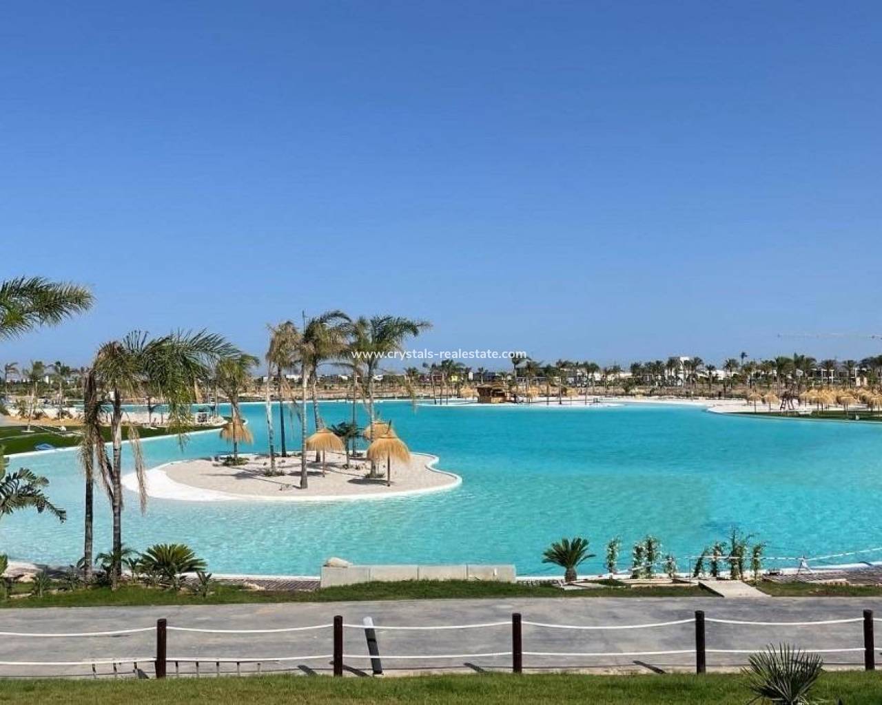 NEW BUILD APARTMENTS IN PRIVATE GATED RESORT IN PROVINCE OF MURCIA New Build residential complex of 6 blocks, a total of 42 apartments. Beautiful apartments have 3 and 2 bedrooms and 2 bathrooms with views of the large lake and green areas of this large luxury resort. Ground floor apartments with private garden, top floor apartments with private solarium. Complex has a communal pool and all the apartments have a parking pace and a storage room. Located in a private gated resort, with a main access entrance and 24 hours security. The resort is designed around an impressive 126.000 m2 green area. It comprises walking and cycling paths, sport facilities, paddle and tennis courts, a mini-golf course, gardens, dog parks, leisure areas, clubhouse…. Also in the central area is the jewel of the resort, a crystal-clear artificial lake of almost 17.000m2 of water surface, surrounded by white sandy beaches and palm trees, bringing a piece of the Caribbean to the Murcia Region. There are 2 islands in the lake, one of them has its own bar, there are also “beach Chiringuitos” spread around the lake. The resort is strategically located less than 4 km from the beach and the town of Los Alcázares, where you can practice various water sports, surrounded by several golf courses and the city of Cartagena less than 15 minutes by car and 22 km from Murcia airport, therefore having a wide cultural, gastronomic and sports offer within reach.