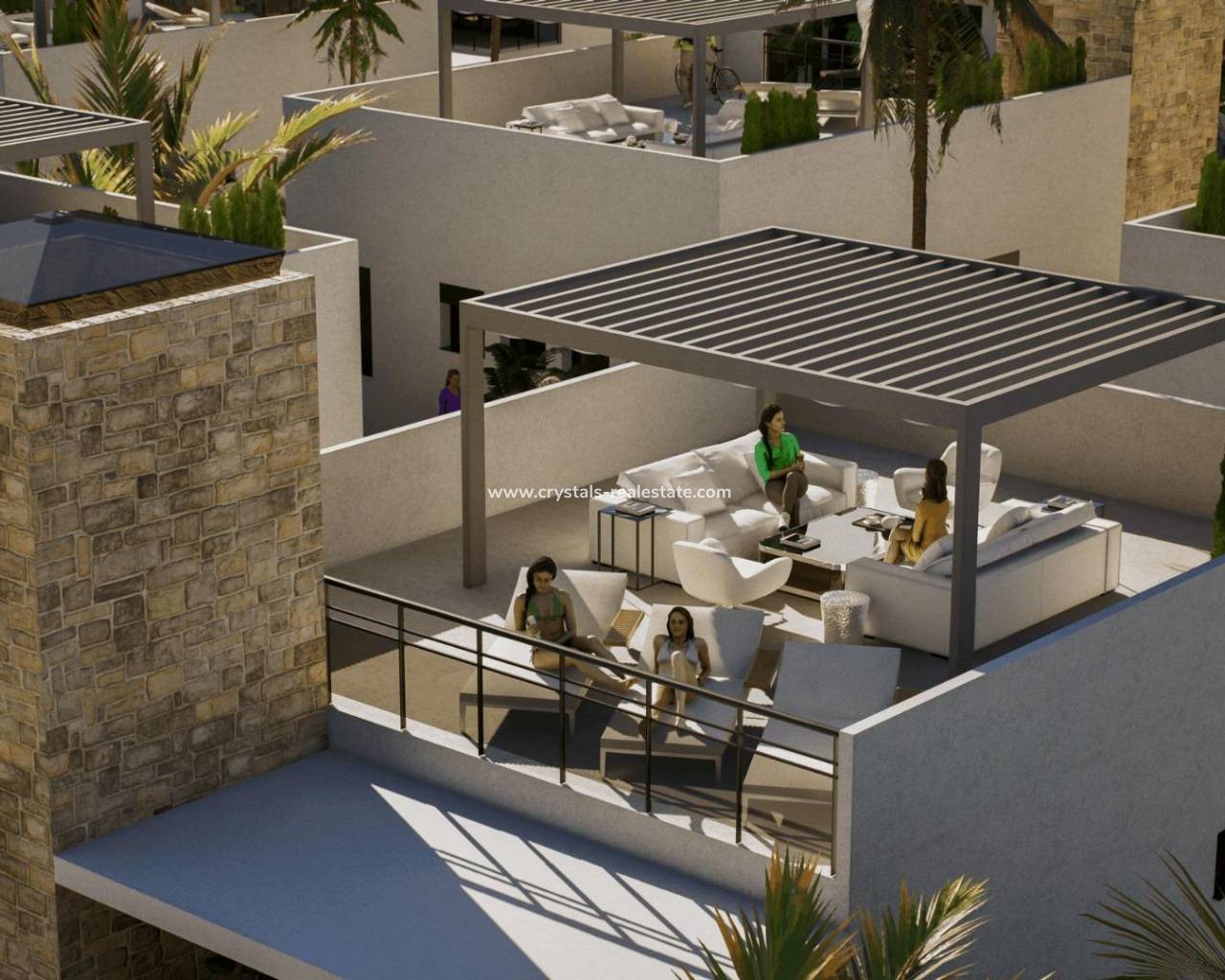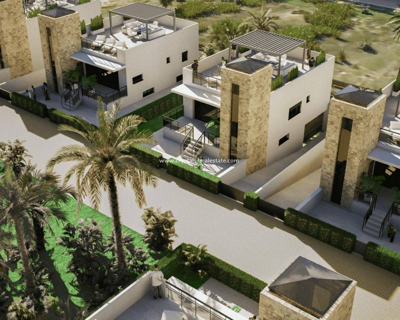 New Build Villas in Camposol Golf (Mazarron-Murcia) with Private Solarium and Basement Exclusive Residential Villas at Camposol Golf Discover this private residential complex of 69 independent villas located in a plot frontline to Camposol Golf in Mazarron, Murcia. Designed around a large central green oasis with a communal swimming pool and landscaped gardens, this development offers a peaceful and secure environment ideal for enjoying the Mediterranean lifestyle. The location combines tranquility with convenience, as the nearby village of El Saladillo provides daily services, shops and local amenities within a short distance. The beautiful beaches of Puerto de Mazarron are just 14 km away, making this an excellent option for both permanent living and holiday homes. Modern Single Level Villas with Flexible Layouts The development offers a selection of modern villas built on one level, available in two or three bedroom configurations. All homes include two bathrooms, one of them en suite, designed with functionality and comfort in mind. Each villa is set on a private plot starting from 300 m2, providing outdoor space for relaxation and entertainment. The properties also feature a private solarium, offering additional outdoor living space with open views of the surrounding golf course and landscape. Basement and Customization Potential A key feature of these villas is the inclusion of a spacious basement, allowing owners to customize the space according to their needs. This area can be adapted into a gym, storage room, home cinema or additional living space, offering great flexibility and added value. The villas are designed with interior stairs connecting all levels, ensuring easy access between the basement, main living area and rooftop solarium. Quality Features and Comfortable Living These new build homes are delivered with high quality finishes and modern features. The kitchens come fully furnished and equipped with appliances, while the bathrooms are completed with shower screens and fittings. Additional features include pre installation for air conditioning, built in wardrobes, electric shutters and a full LED lighting package, ensuring comfort and convenience from day one. Prime Location in Mazarron Near Golf and Coast Camposol is a well established residential area known for its golf course, relaxed atmosphere and international community. Mazarron offers a wide range of services, restaurants and leisure options, while the nearby coast is famous for its sandy beaches and crystal clear waters. Key distances include Camposol Golf on your doorstep, El Saladillo village 2 km, Puerto de Mazarron beaches 14 km, Mazarron town center 10 km, Murcia Corvera Airport 35 km and Cartagena city 40 km. Ideal Investment and Lifestyle Opportunity in Murcia This development offers an excellent opportunity to own a modern villa in a golf front location with great potential for customization and strong rental appeal. Contact us today to receive more information or to arrange a viewing and secure your new villa in Camposol-Mazarron.