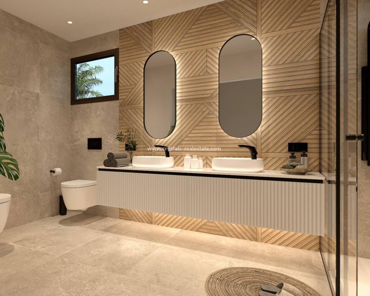 Modern Semi Detached Villas with Private Pool in Las Filipinas-Orihuela Costa Exclusive New Build Villas in a Prime Costa Blanca Location Discover this boutique development of eight modern semi detached villas located in Las Filipinas, Orihuela Costa, one of the most sought after residential areas in the southern Costa Blanca. This well established neighborhood offers excellent access to everyday amenities including supermarkets, restaurants, pharmacies and leisure facilities, all within a short distance. Ideally positioned between some of the best golf courses in the area, including Villamartin Golf, Campoamor Golf, Las Ramblas Golf and Las Colinas Golf, these villas provide an exceptional lifestyle for golf lovers and international buyers. The beautiful beaches of Orihuela Costa are just 6 km away, making this an ideal location for both permanent living and holiday homes. Contemporary Design with Spacious Layouts Each villa is built on a private plot of approximately 300 m2 and offers around 140 m2 of modern living space distributed over two floors. The properties feature three double bedrooms, two full bathrooms with double sinks including an en suite, and an additional guest toilet. The ground floor showcases a bright and stylish living area with a feature wall finished in natural stone, creating a warm and elegant atmosphere. Large windows provide direct access to the outdoor terrace and private swimming pool, which includes decorative water features. At the rear of the property, a designer Italian kitchen with a central island and LED lighting opens to a spacious dining area with access to the garden and private parking area. Elegant Bedrooms and Outdoor Living The first floor includes two guest bedrooms with built in wardrobes and a family bathroom. The master bedroom stands out with a sophisticated design, featuring a floor to ceiling oak headboard, mirrored details and a luxurious en suite bathroom, as well as views over the pool area. There is also the option to add a rooftop solarium or a semi basement, offering additional space and customization potential. High Quality Features and Modern Comfort These villas are built with high quality materials and the latest technology to ensure comfort and efficiency. Features include pre installation for ducted air conditioning, aerothermal system for hot water, underfloor heating in bathrooms and electric shutters. Additional specifications include an alarm system, video intercom and automated vehicle access gate, ensuring both convenience and security. Prime Location Close to Beaches and Golf Las Filipinas offers a strategic location with excellent connectivity. The beaches of Orihuela Costa are approximately 6 km away, while Murcia International Airport is 50 km and Alicante Airport is 55 km. Several top golf courses are located within a radius of 2 to 5 km. Ideal Investment Opportunity on the Costa Blanca These modern villas offer a perfect combination of design, location and lifestyle, making them an excellent investment or second home on the Costa Blanca. Contact us today for more information or to arrange a viewing and secure your new villa in Orihuela Costa.