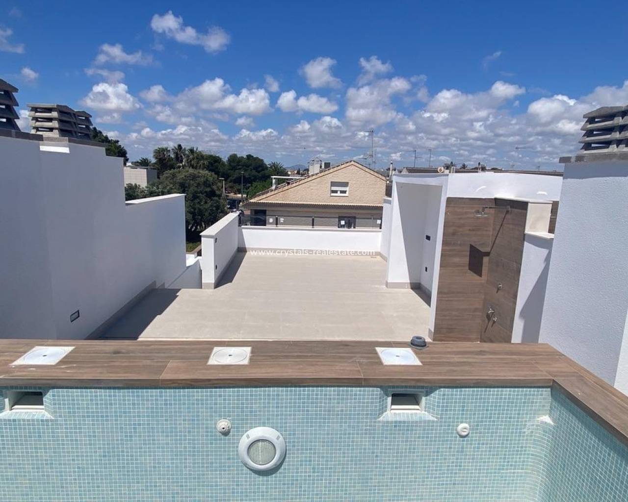 New Build Bungalows in San Pedro del Pinatar Modern Living Near the Beach Contemporary Coastal Homes in El Salero San Pedro del Pinatar Discover these stylish 12 new build bungalows located in El Salero, a charming residential area of San Pedro del Pinatar on the Costa Calida. This sought after location offers the perfect balance between coastal living and everyday convenience, with supermarkets, restaurants, cafes and essential services all within walking distance. San Pedro del Pinatar is well known for its natural mud baths, salt flats and relaxed Mediterranean lifestyle. With a welcoming community and a mild climate all year round, it is an ideal destination for both permanent living and holiday homes. Prime Location Close to the Mar Menor and Mediterranean Sea These properties are ideally located just 2 km from the beaches of Villa Nanitos on the Mar Menor and El Mojon on the Mediterranean Sea, both easily reachable within a 20 minute walk. The area is perfect for water sports enthusiasts, with nearby marinas, sailing clubs and coastal promenades. Modern Design and Functional Layouts The development offers modern bungalows with 2 bedrooms and 2 bathrooms, designed with open plan kitchens and bright living spaces that maximize natural light. Ground floor units feature spacious private terraces with the option to add a private swimming pool at an additional cost. Top floor properties include a private rooftop solarium with a swimming pool already included, providing the perfect space to relax and enjoy the Mediterranean sun. Each property also includes a private parking space. High Quality Finishes and Energy Efficiency These homes are built with high quality materials and modern specifications to ensure comfort and efficiency. Features include pre installation for ducted air conditioning, aerothermal system for hot water and electric shutters. Bathrooms come fully equipped with vanity units, mirrors, shower screens and underfloor heating. A complete LED lighting package is included both indoors and outdoors, enhancing the overall ambiance of the property. Excellent Connectivity and Nearby Amenities San Pedro del Pinatar offers excellent connections to key destinations. The Dos Mares shopping center is approximately 4 km away, while Murcia International Airport is around 35 km. Alicante Airport can be reached in approximately 75 km. Several golf courses and marinas are located within a short drive, making this an ideal location for leisure and recreation. Ideal Property for Investment or Year Round Living These new build bungalows combine modern design, a prime coastal location and high quality finishes, making them an excellent choice for investment, holiday use or permanent residence. Contact us today to receive more information or to arrange a viewing and secure your new home in San Pedro del Pinatar.